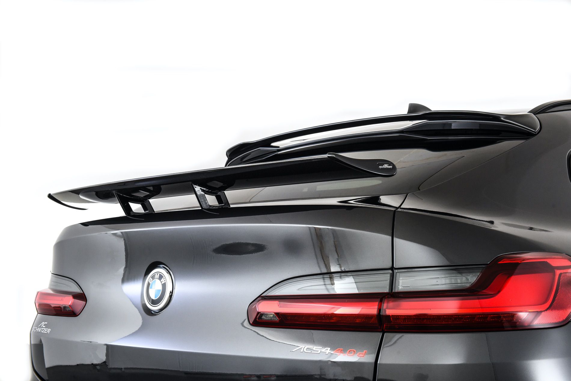 The aero part of the program is not ignored either. The sporty character of the BMW X4 is underlined by AC Schnitzer “Sport” carbon tailtrims, which are also available in chromed “Sport” and black “Sport” versions. Other visual upgrades include front spoiler elements for the M Sport models rear roof spoiler, rear spoiler and carbon “Racing” rear wing.