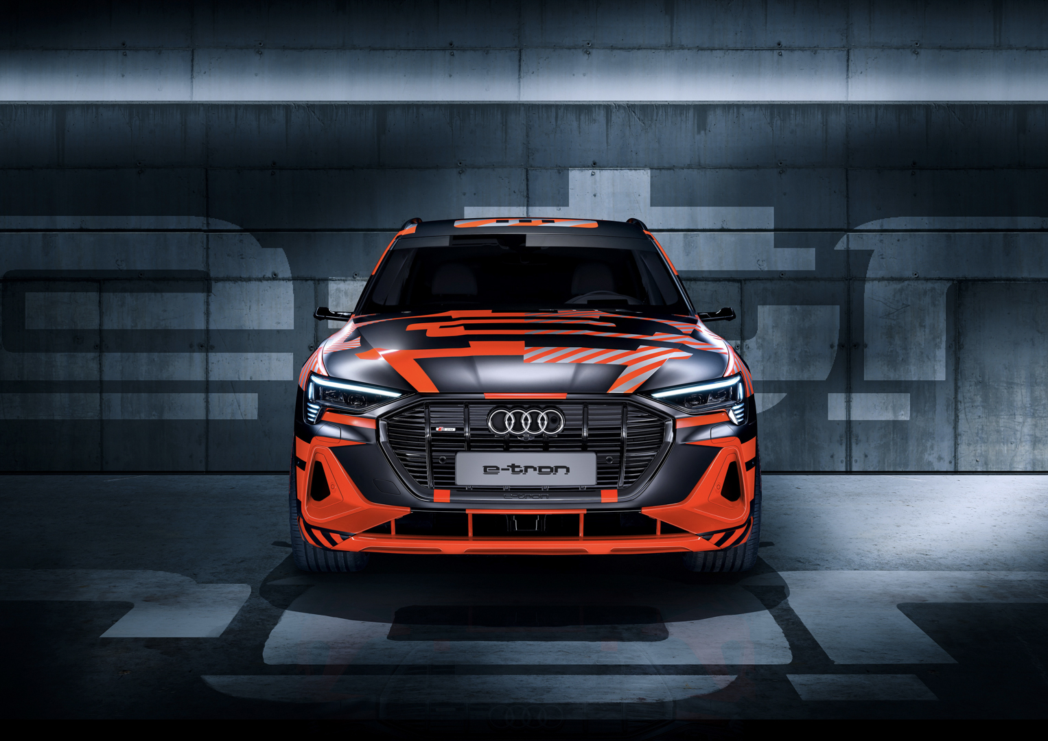 You can’t really see much through the factory camouflage but there are some really interesting design features here. For instance, it packs the same side mirror cameras as the bigger e-tron SUV (like them or not, they’re pretty fascinating), a subtle rear diffuser, and a small rear decklid lip spoiler. At least in its design, Audi seems to be suggesting this will be the sportiest of its electric SUVs. One little design touch I personally really like is the graphic on the tire sidewall, with the “e-tron” logo and the orange stripes. That would be cool on the production car, though doubtful.