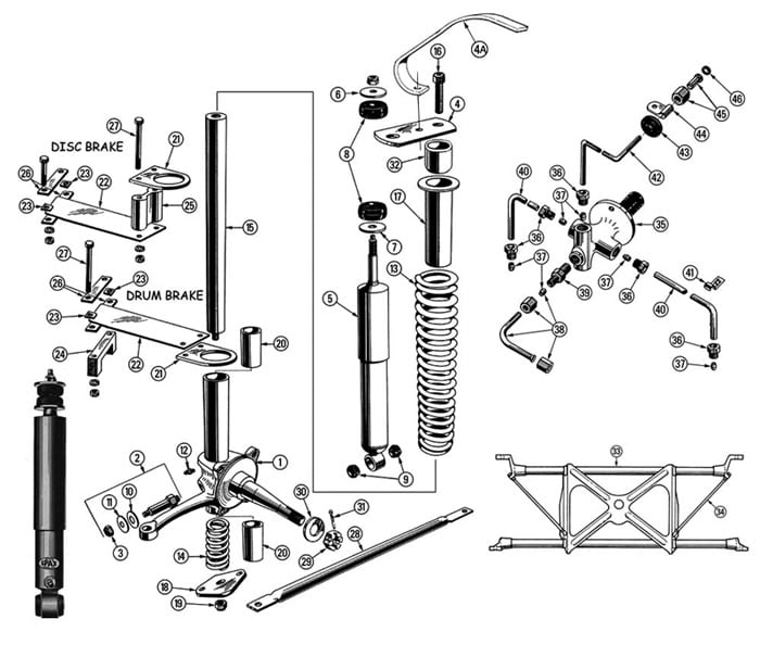 Morgan was one of the last, if not THE last, proponent of the sliding pillar front suspension. See the attached exploded diagram found on the Morgan Motors of New England web site (https://www.morgan-spares.