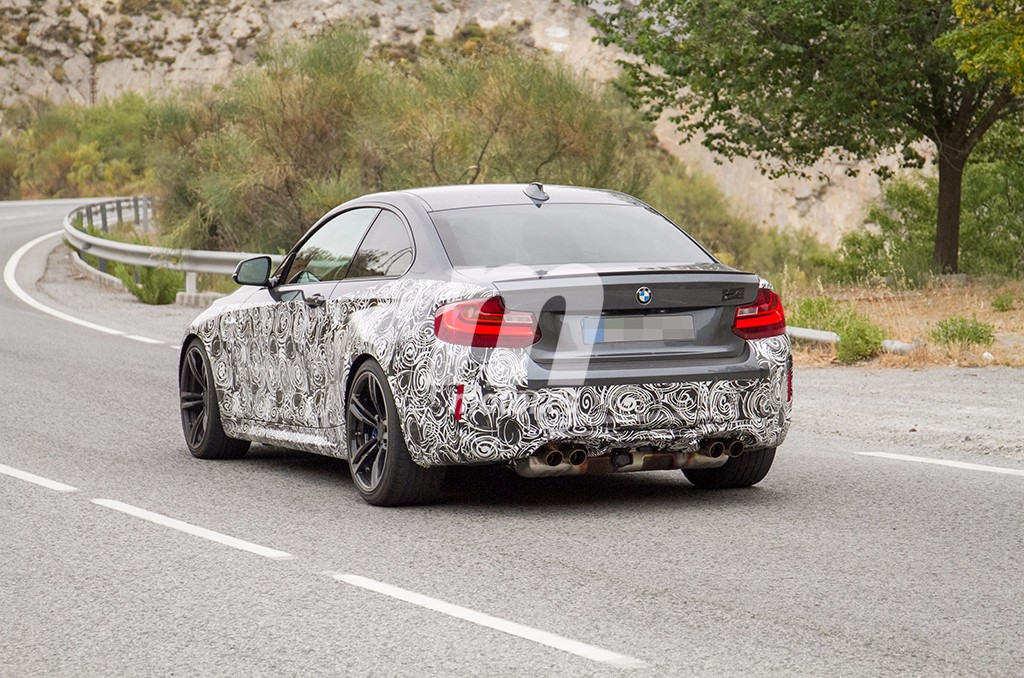 Out back, the BMW M2 CS gets a new rear decklid spoiler, which is also covered in camo here. It’s quite large, actually, and reminds us of the one found on the E46 M3 CSL. Below that new spoiler, a new diffuser sits in between its exhaust pipes and makes the back end look very sporty.