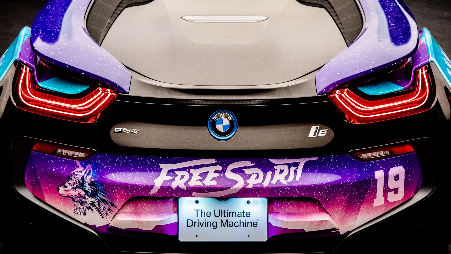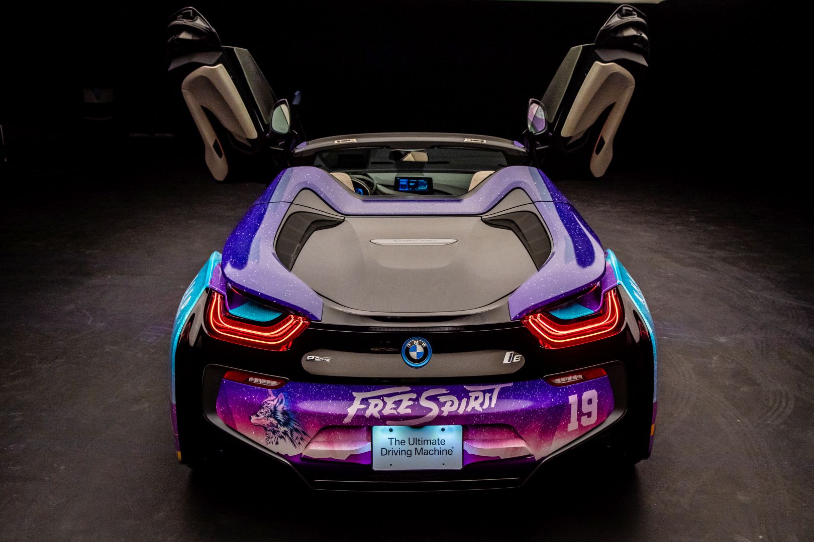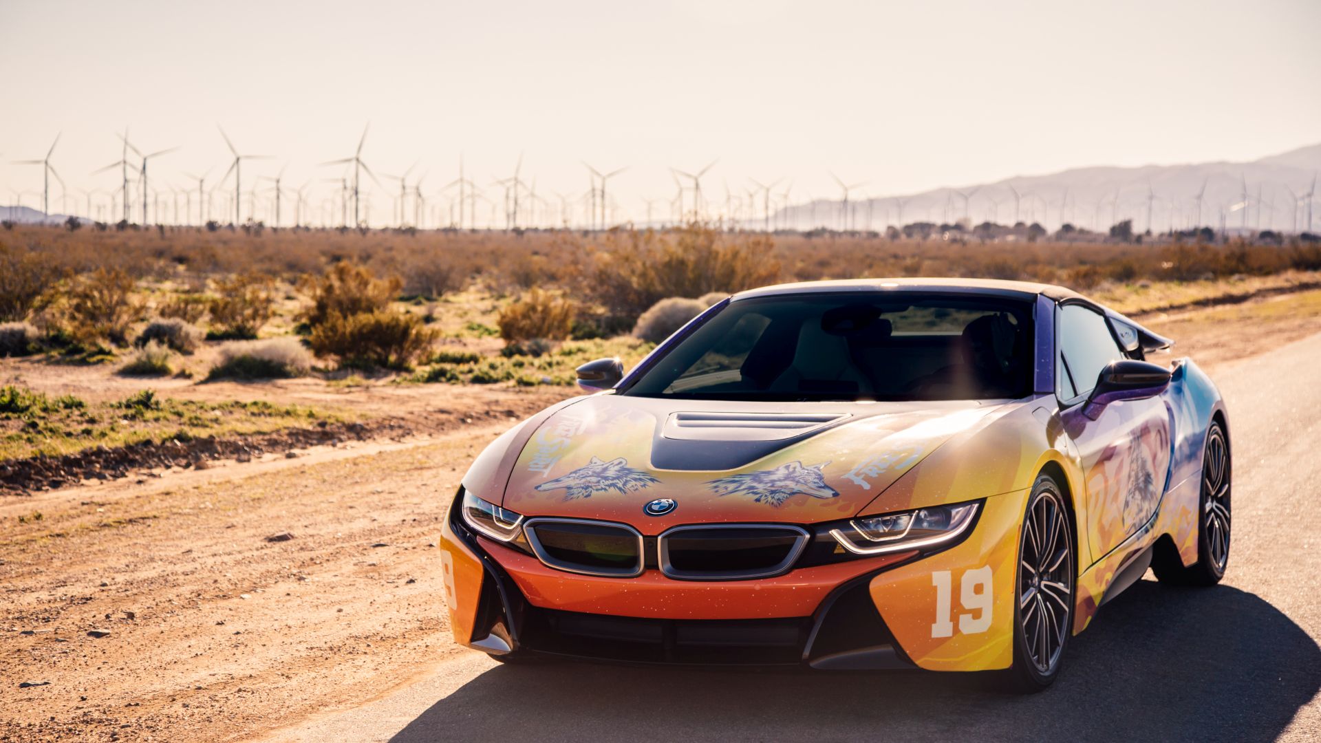 Although we saw a first video of the final creation a while back, the car wasn’t actually presented in detail until today. The photo gallery below contains all the details you want to know about. The striking look features flames and the image of a wolf and is inspired by the current album cover of Khalid. He inspired the festival fleet of vehicles for BMW i based on the cover of his new album ‘Free Spirit’. The Road to Coachella embodies the Free Spirit mentality of a fun road trip with friends to one of the greatest music festivals.