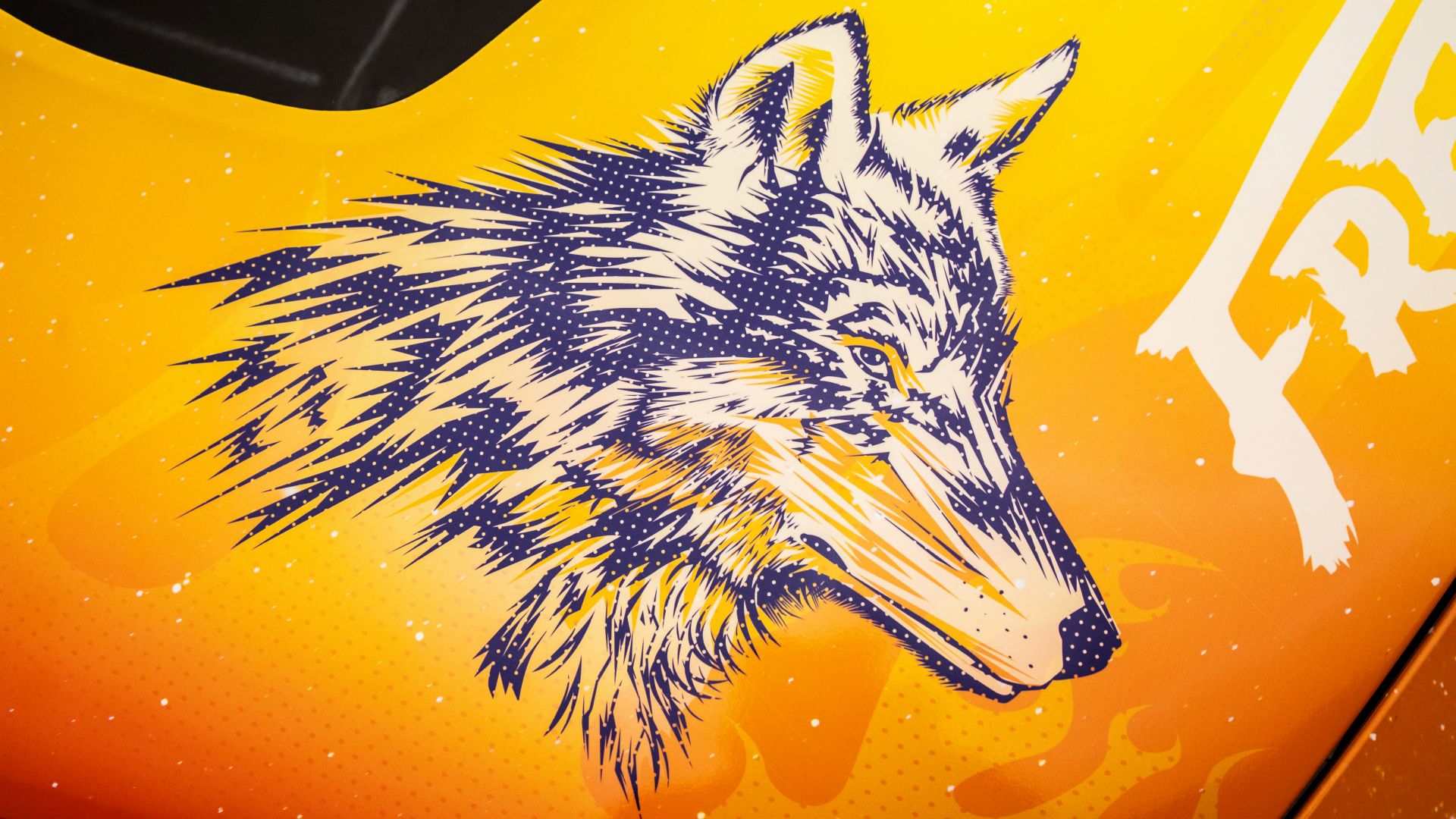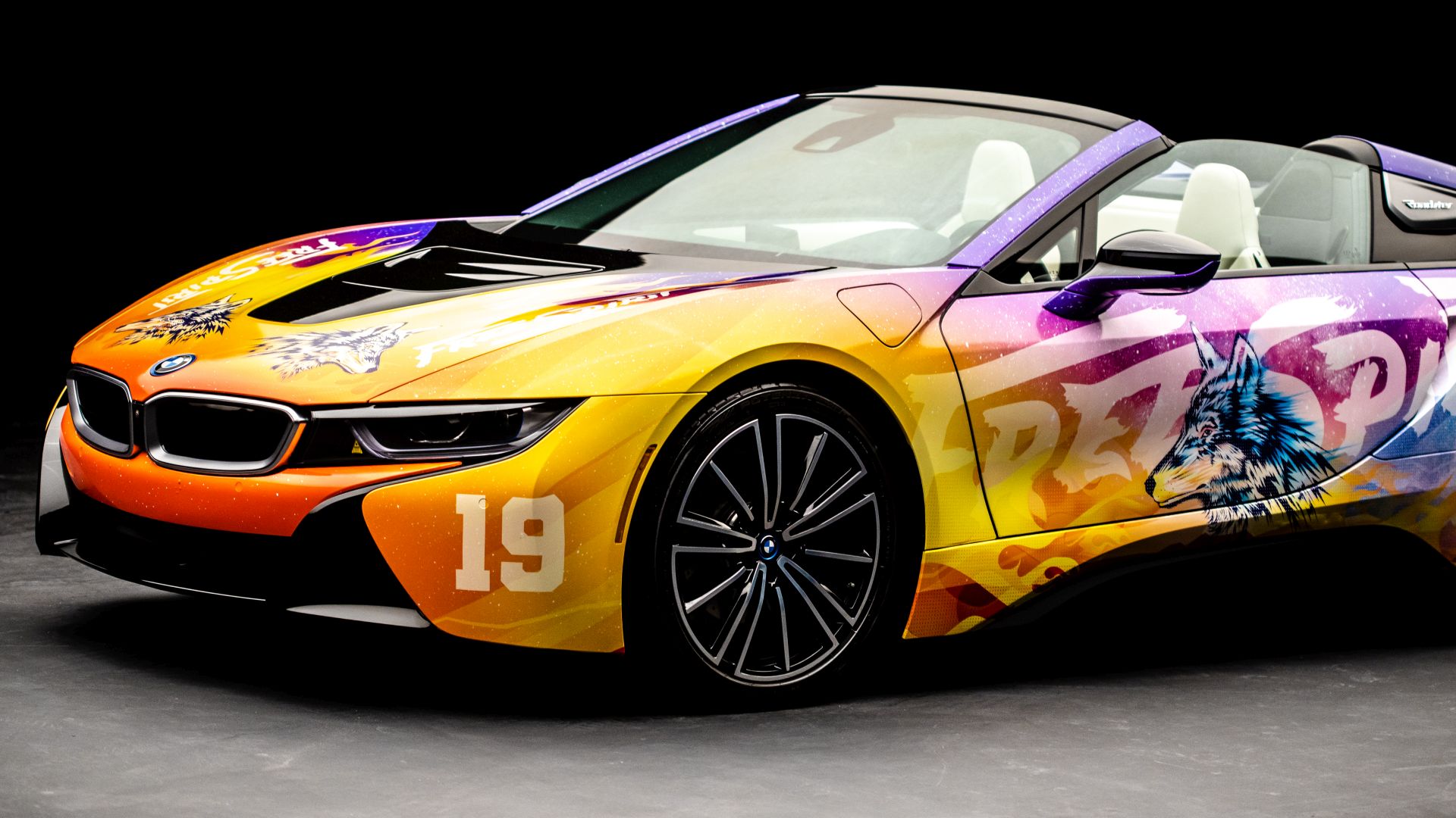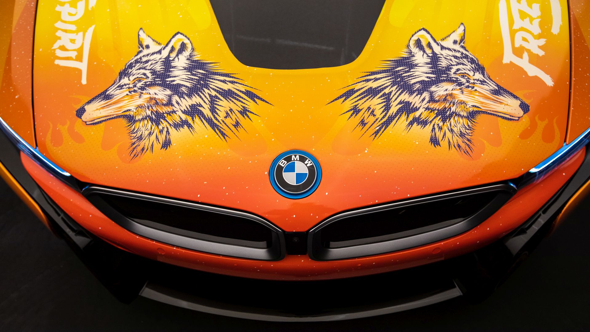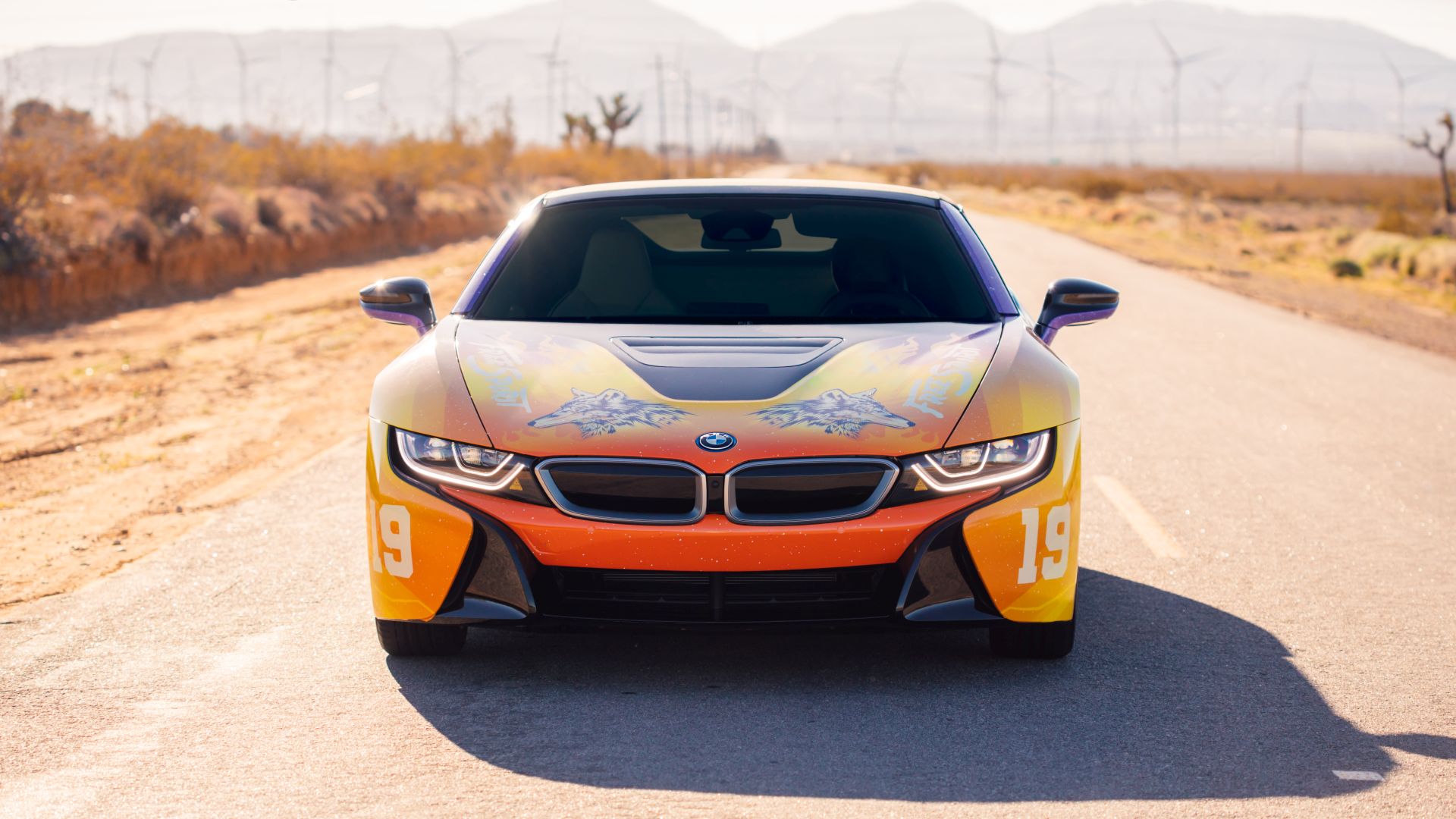 Although we saw a first video of the final creation a while back, the car wasn’t actually presented in detail until today. The photo gallery below contains all the details you want to know about. The striking look features flames and the image of a wolf and is inspired by the current album cover of Khalid. He inspired the festival fleet of vehicles for BMW i based on the cover of his new album ‘Free Spirit’. The Road to Coachella embodies the Free Spirit mentality of a fun road trip with friends to one of the greatest music festivals.