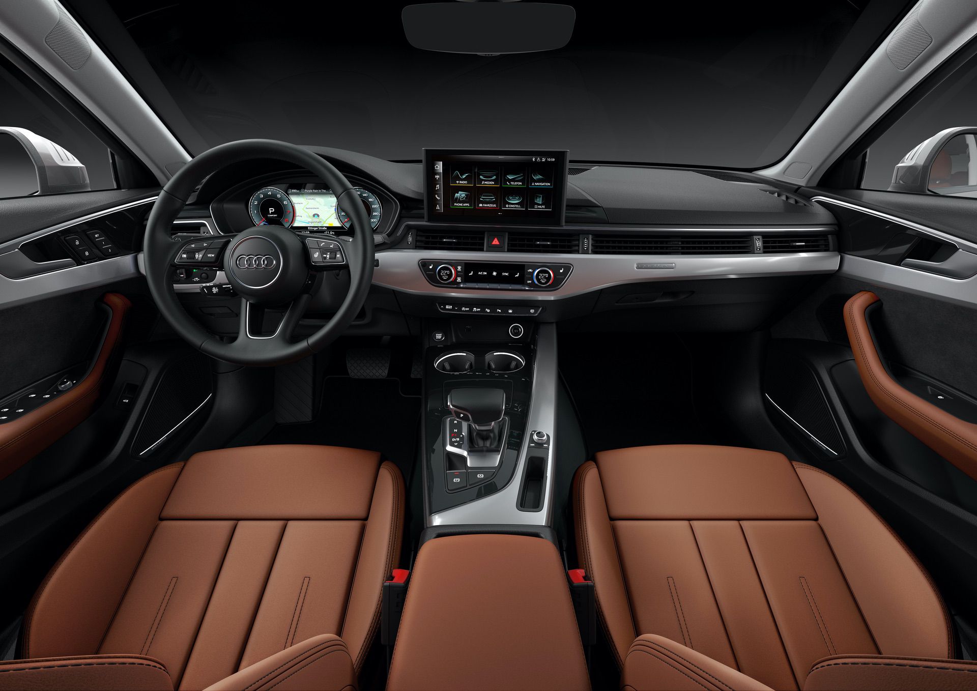 Inside the updated Audi A4, the biggest change is the new 10.1-inch MMI touch display offering a menu structure that is said to be easier to use. The classic rotary control on the centre console has been eliminated in the process, although designers incorporated a physical volume knob. That opens up space for a new storage cubby to slot between the cupholders and shifter. Three instrument cluster variants are available: two partially analog driver information systems and, in conjunction with the MMI plus, the all-digital 12.3-inch Audi virtual cockpit plus.
