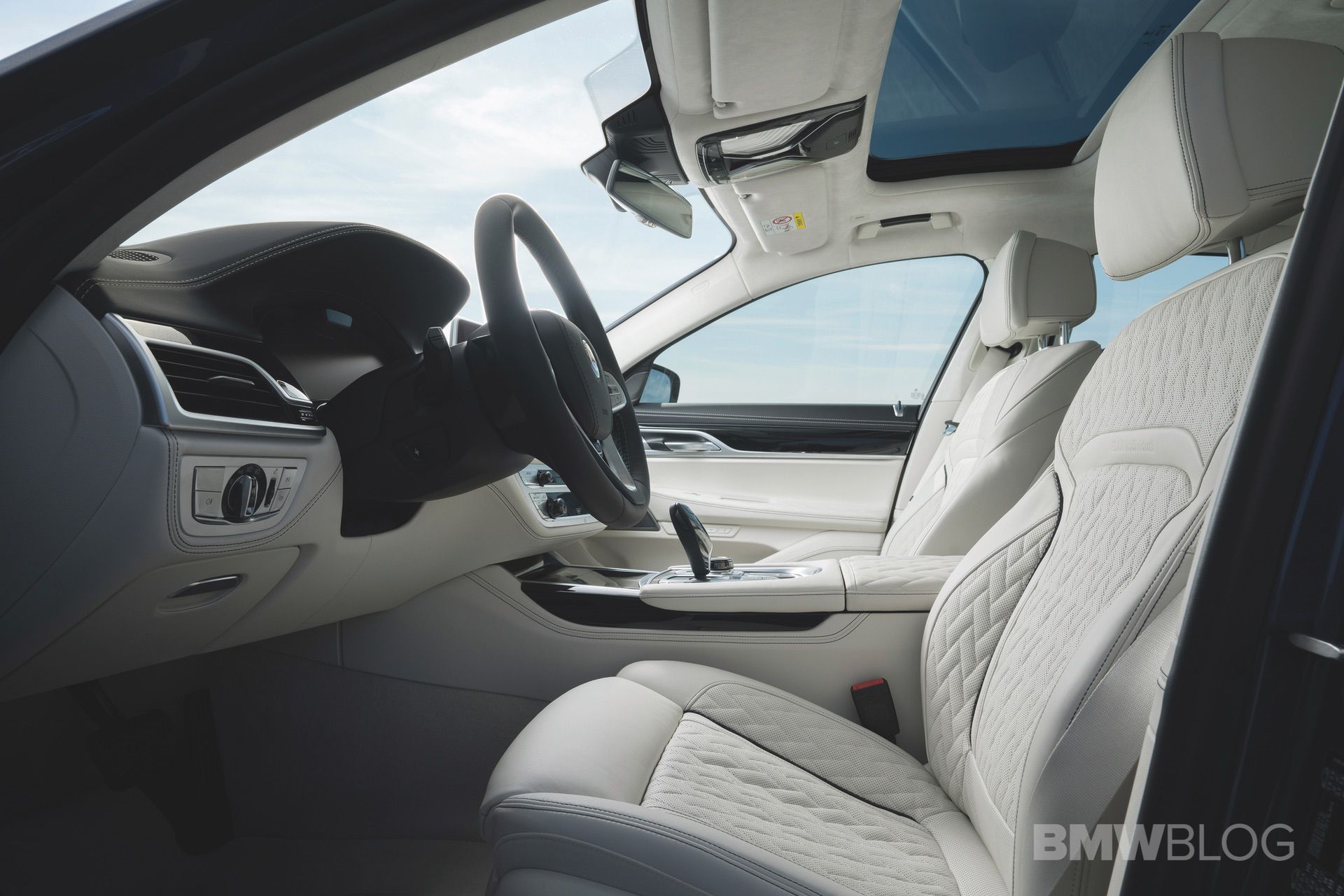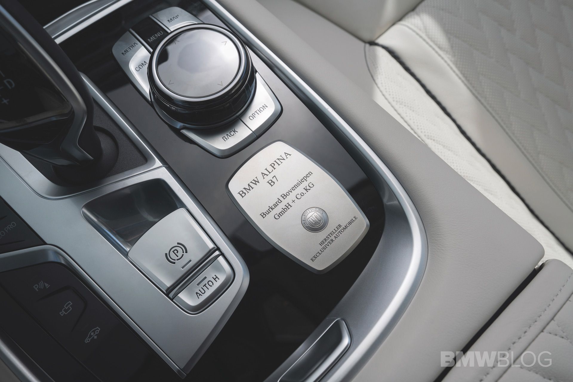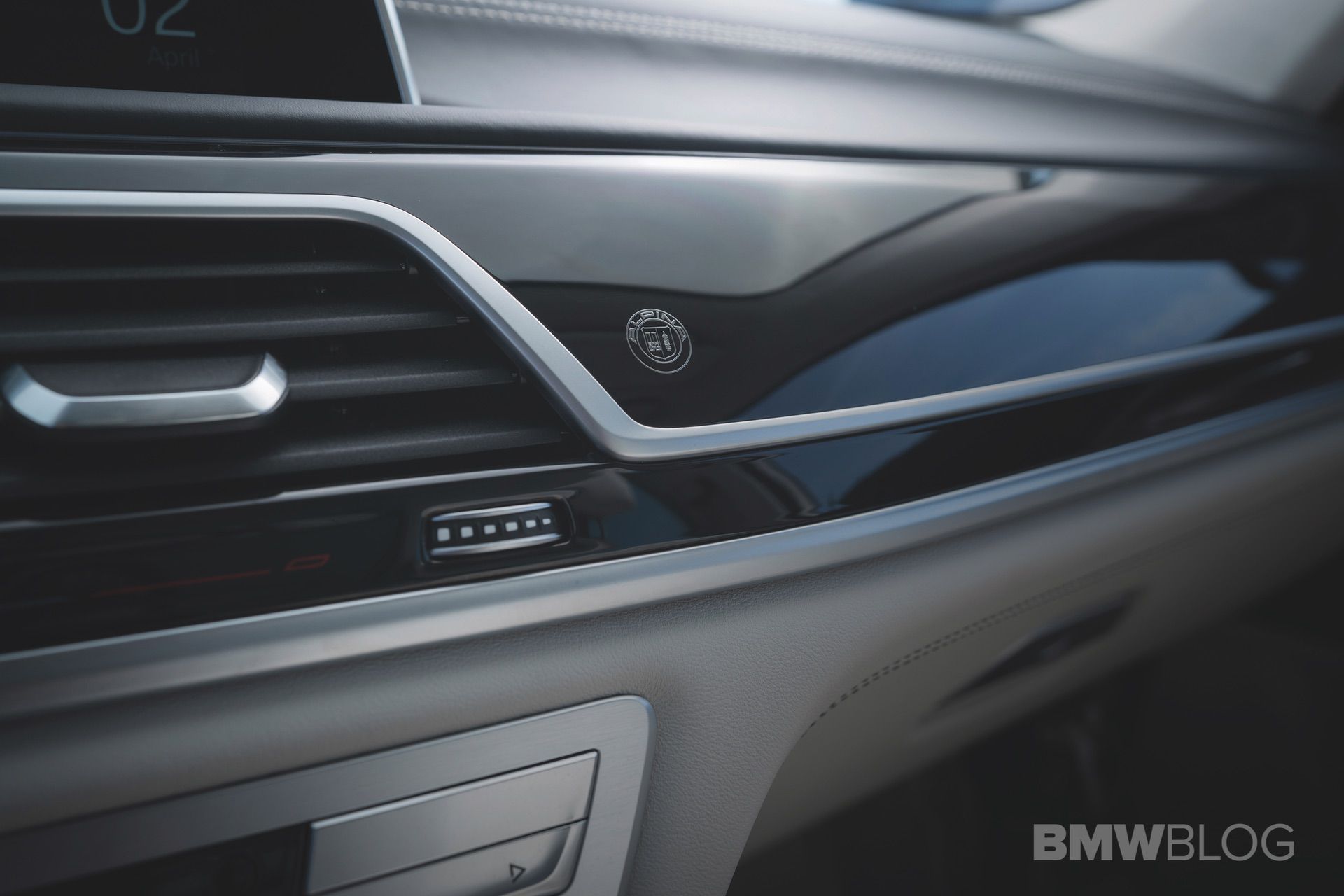 Contemporary Piano lacquer or classic Myrtle Luxury Wood interior trim, door sills with blue illumination, ALPINA B7 model inscriptions and an individual production plaque are examples of exclusive equipment features.