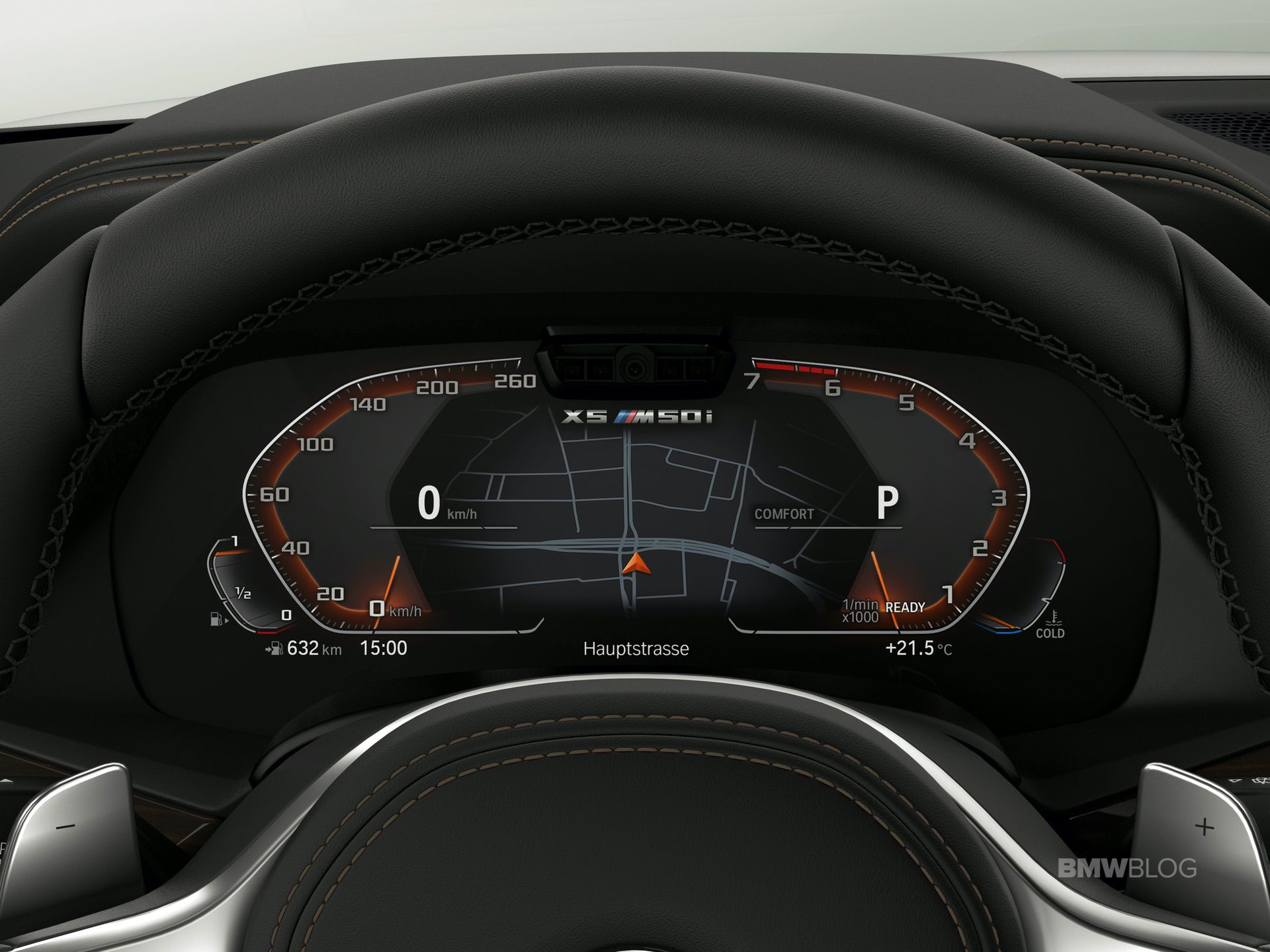 Inside, it gets a three-spoke M Sport steering wheel with M-colored stitching, contrast stitching on the Vernasca leather, some “M50i” badges and a black anthracite headliner.