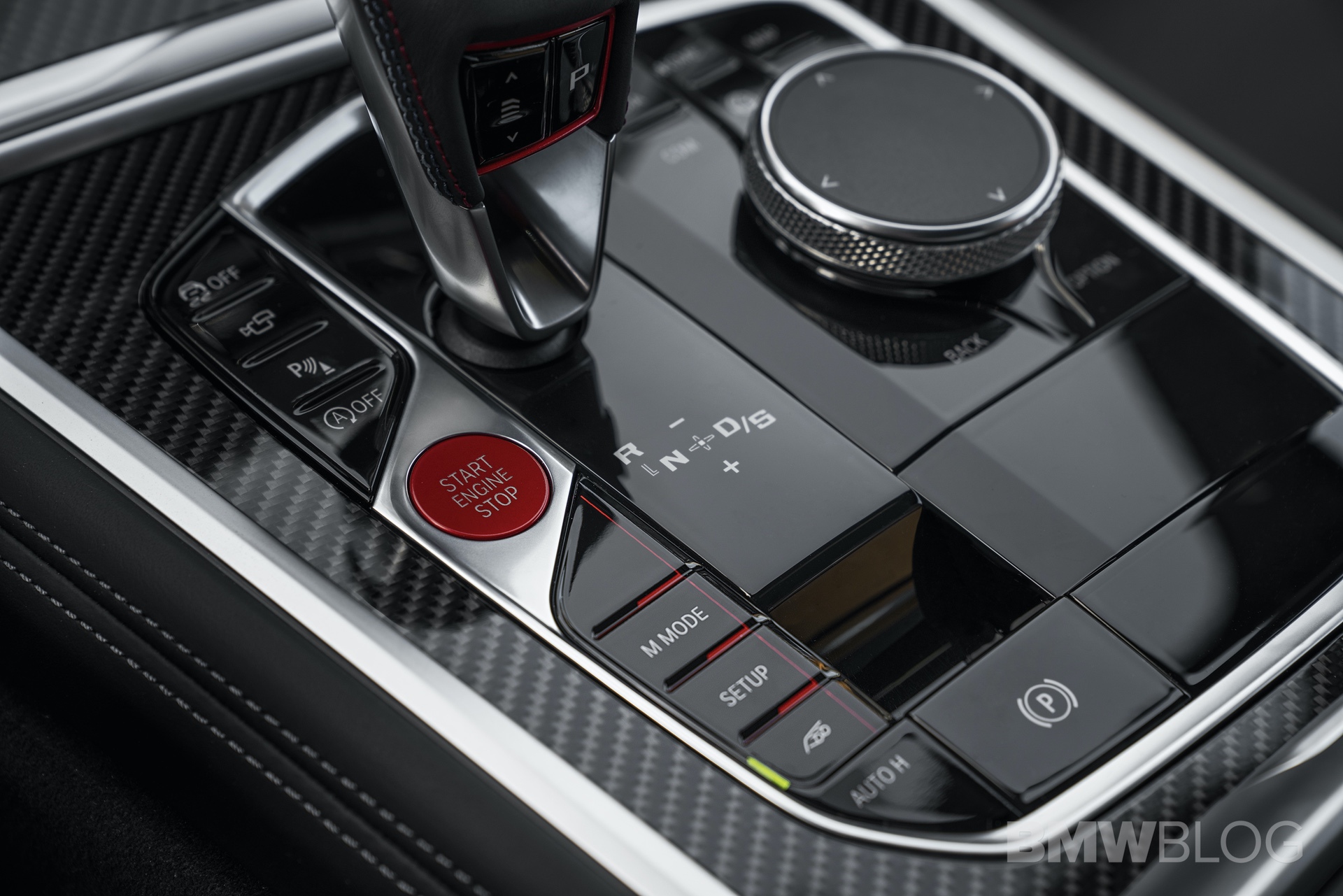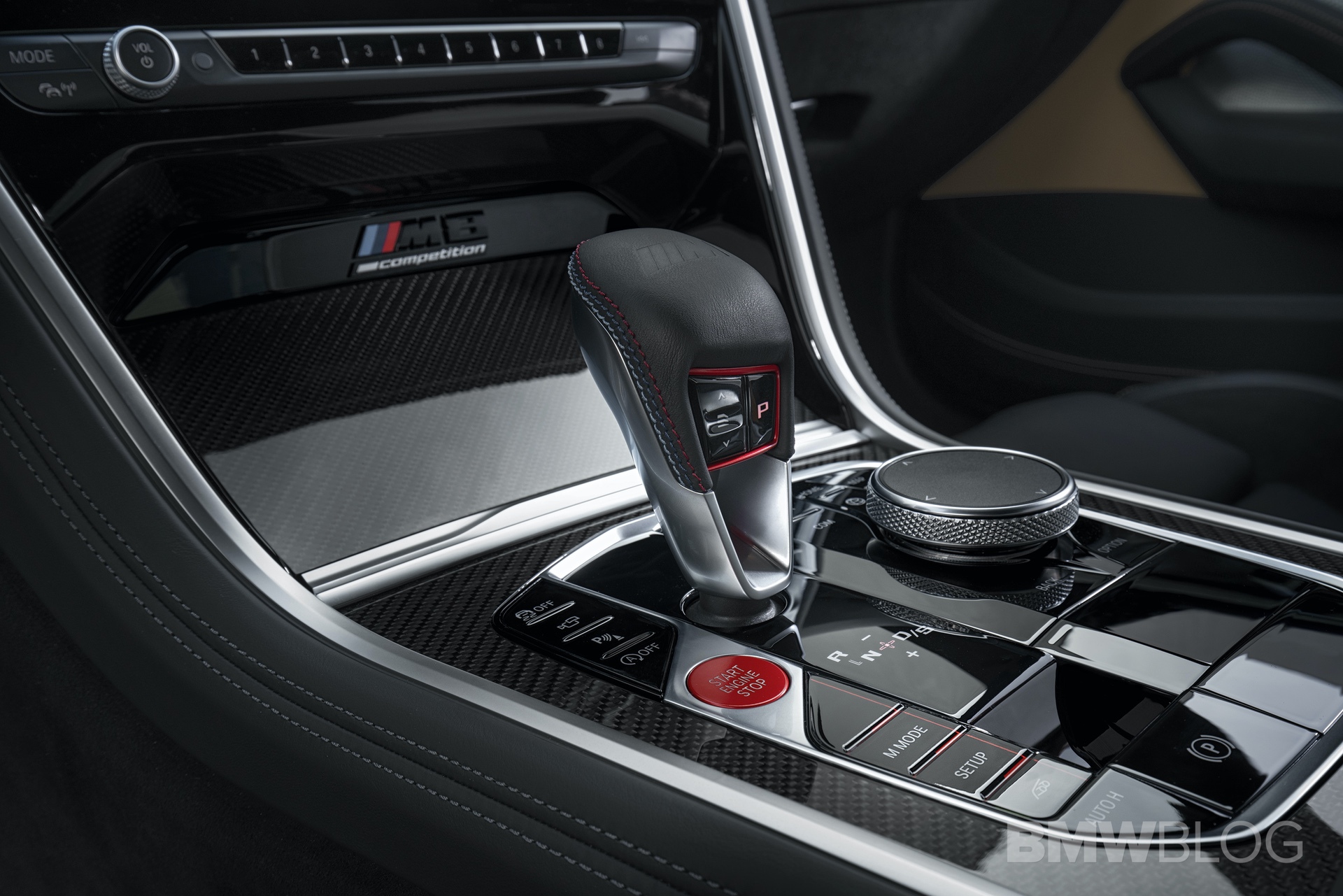 A new shift lever replaces the M5’s robot-leg knob and it looks much better. It’s now covered in black leather with red contrast stitching, giving it a more sportier look while also looking more premium than the plastic square in the M5. Having actually sat in the new M8 and held the new shifter, I can personally say that it’s much better than the one in the M5.