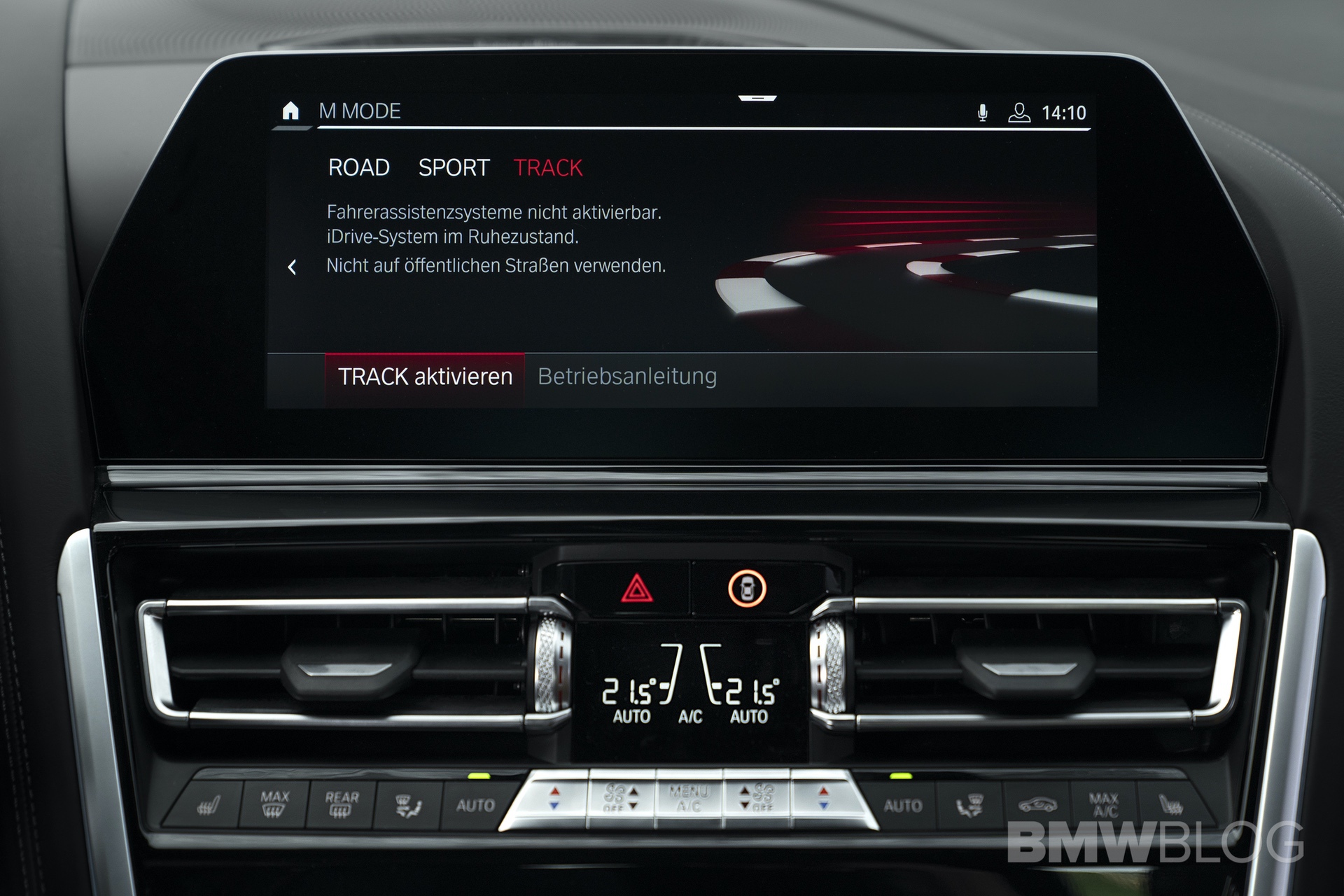 An extended press of the M Mode button engages TRACK mode, which is available in the Competition models and designed exclusively for use on race circuits. The decision to activate this mode must be confirmed using the iDrive Controller. In this setting, all the comfort and safety functions of the driver assistance systems are deactivated.