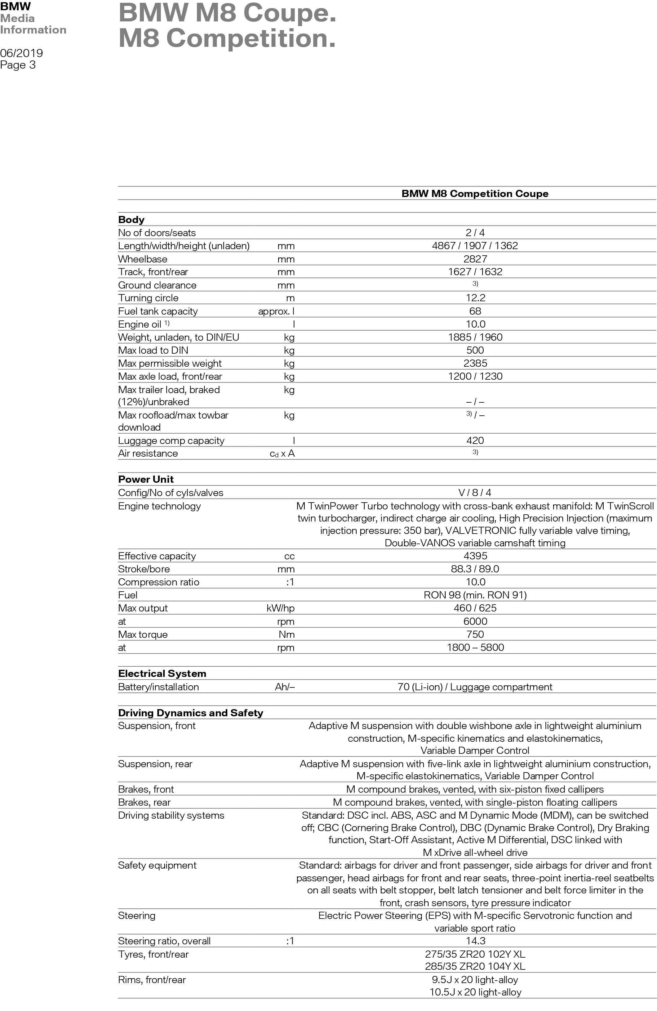 BMW M8 Coupe – Specs