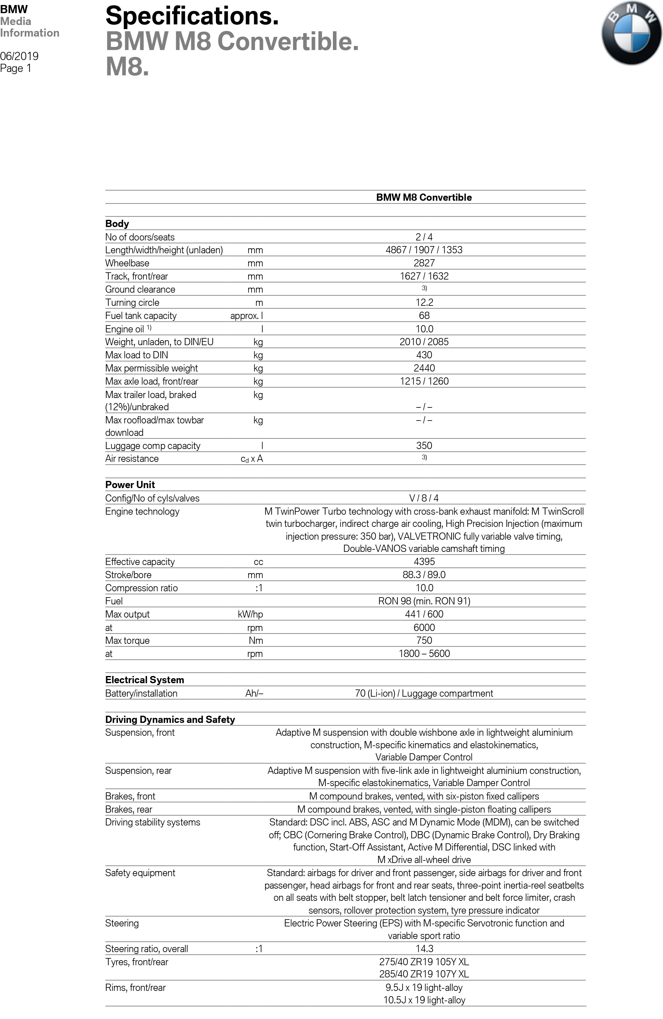If it’s not fast enough for you, a BMW M8 Competition Convertible will be available as well. That will make 625 hp and 553 lb-ft of torque, just like its Coupe sibling, and will shed about a tenth of a second off of its claimed 0-62 mph time, doing it in about 3.3 seconds. Again, we suspect it will be quicker in the rear world.