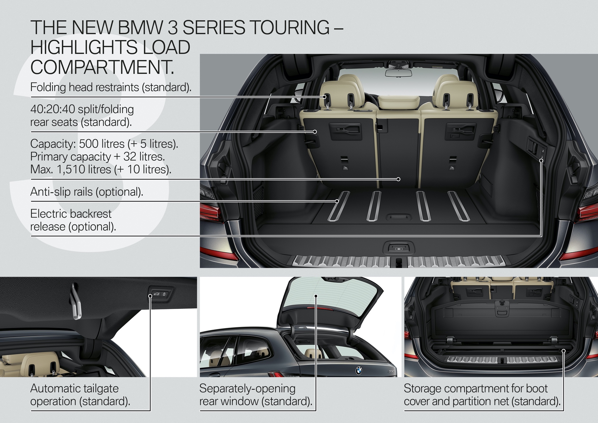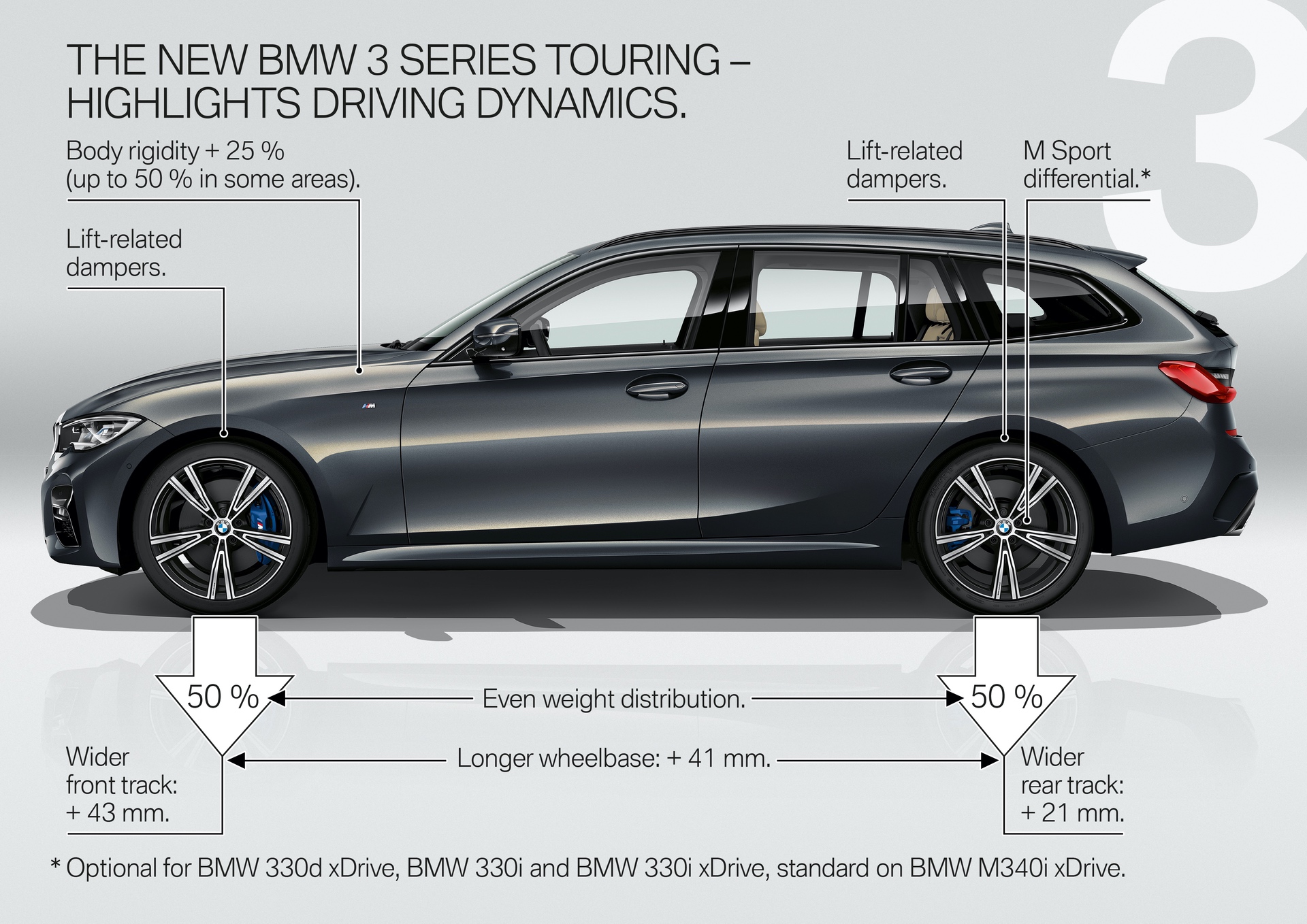 The sixth generation of the BMW 3 Series Touring will be unveiled to the public for the first time on 25 – 27 June 2019 via the new BMW Group #NEXTGen presentation platform at BMW Welt in Munich. Hosting the show premiere of the new BMW 3 Series Touring, meanwhile (just as it did the first generation of the five-door car), will be the IAA event in Frankfurt am Main in September 2019. The worldwide launch will get underway on 28 September 2019. Like all of its predecessors, the new BMW 3 Series Touring will be built at the BMW’s home plant in Munich – alongside the new BMW 3 Series Sedan. The new BMW 3 Series Touring will go on sale in Europe, Japan, South Korea, Taiwan, Hong Kong, Australia and New Zealand.