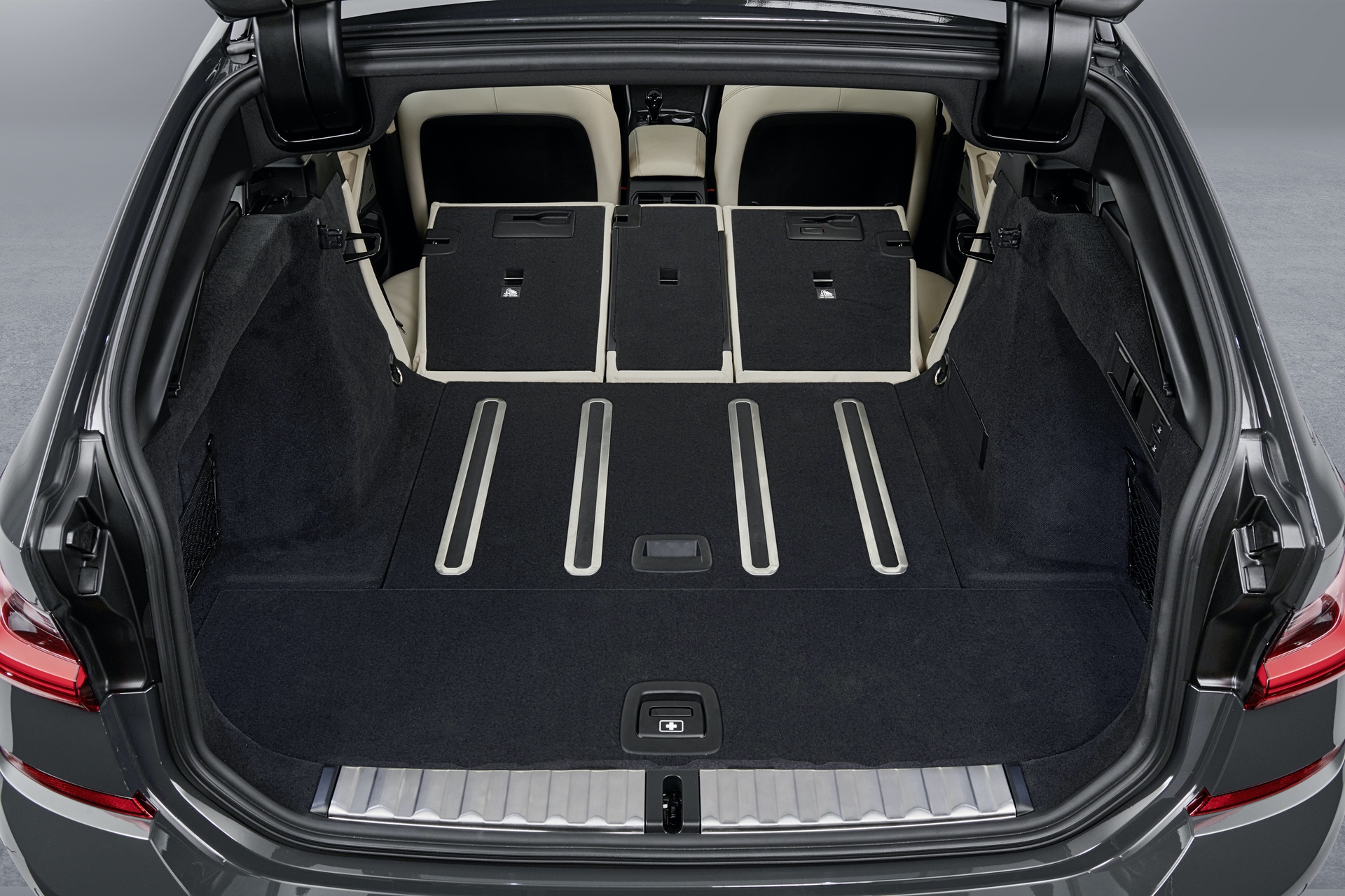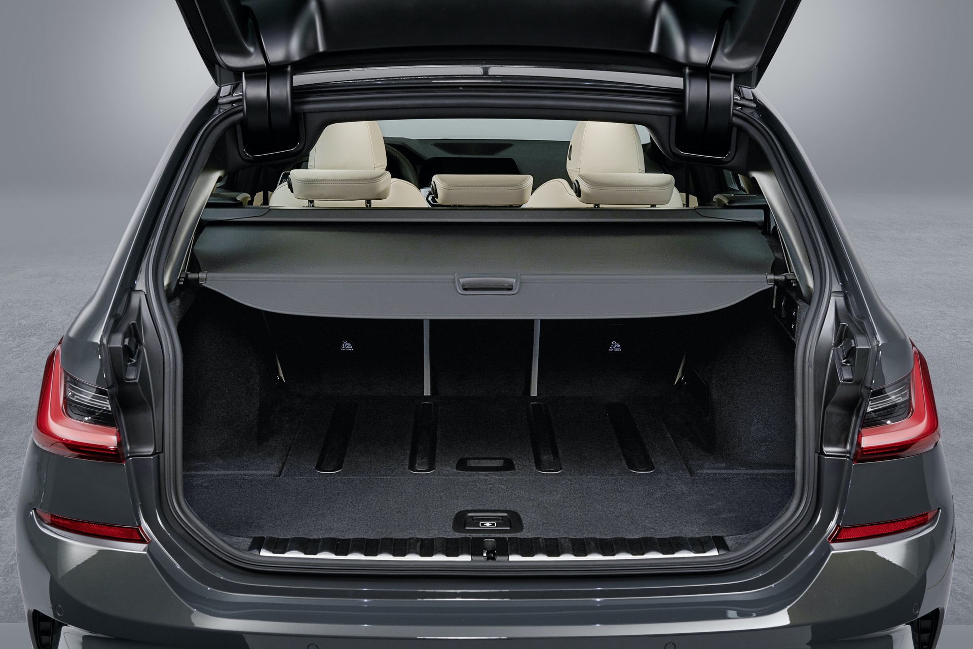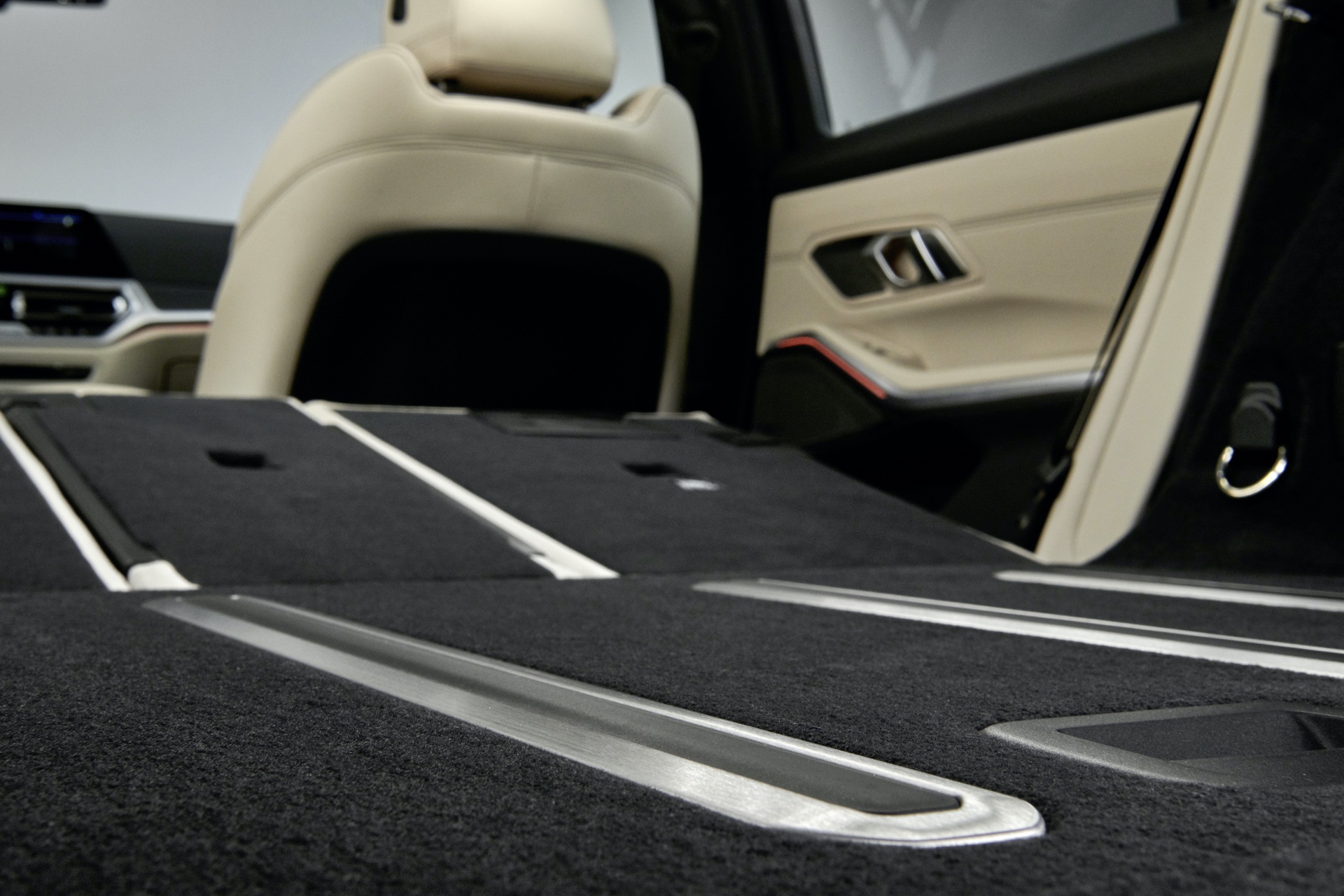 BMW has also been clever to integrate optional non-slip rails into the floor of the trunk. These non-slip rails feature aluminum rails with rubber inserts. The rubber inserts sit just slightly below the aluminum rails while the tailgate is open, to make sliding items into the trunk easier. Once the tailgate is closed, those rubberized inserts rise again, adding grip so that items don’t slide around while driving. That’s quite clever and something BMW claims all of the 3 Series’ competitors lack. There’s even a place to store the parcel shelf underneath the trunk floor, which is a small but very welcome feature.