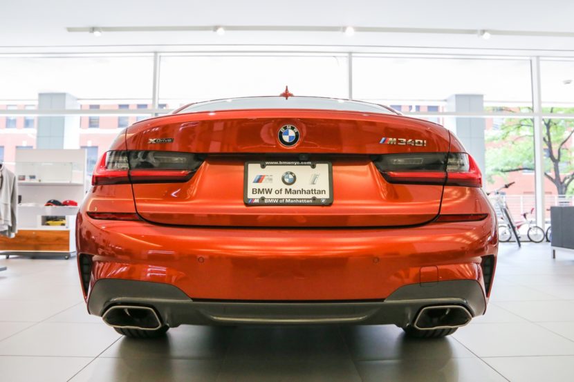 When the new 2020 BMW M340i was launched the official marketing color chosen was Black Sapphire. Since, first units of the M340i have started to arrive at local dealerships and with that, also a new range of colors for the M Performance 3 Series. These latest images feature the M340i in Sunset Orange and come courtesy of BMW of Manhattan.