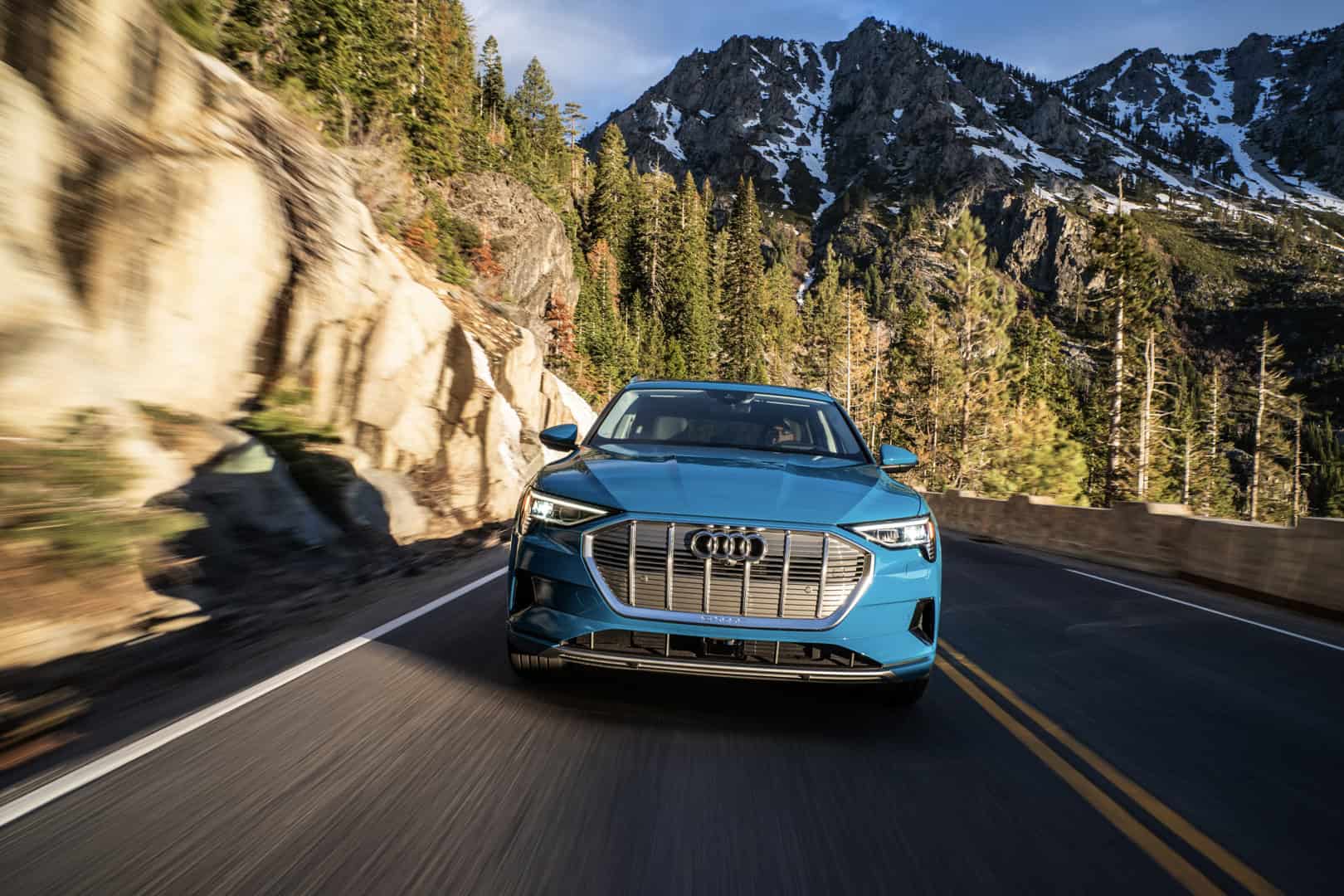 After lunch, we headed back onto the road but this time it was mostly highway duty on the way to Lake Tahoe. On the highway, the Audi e-tron is surprisingly easy to drive. It’s easy to hold at speed and its intelligent regenerative braking system keeps the regen low at speed on the highway. There are multiple regen modes but there’s one that automatically adapts to your driving, navigation route and elevation changes to always keep it in an optimal setting. It works well, as it held the regen braking back on the highway, making it easy to drive at high speed.