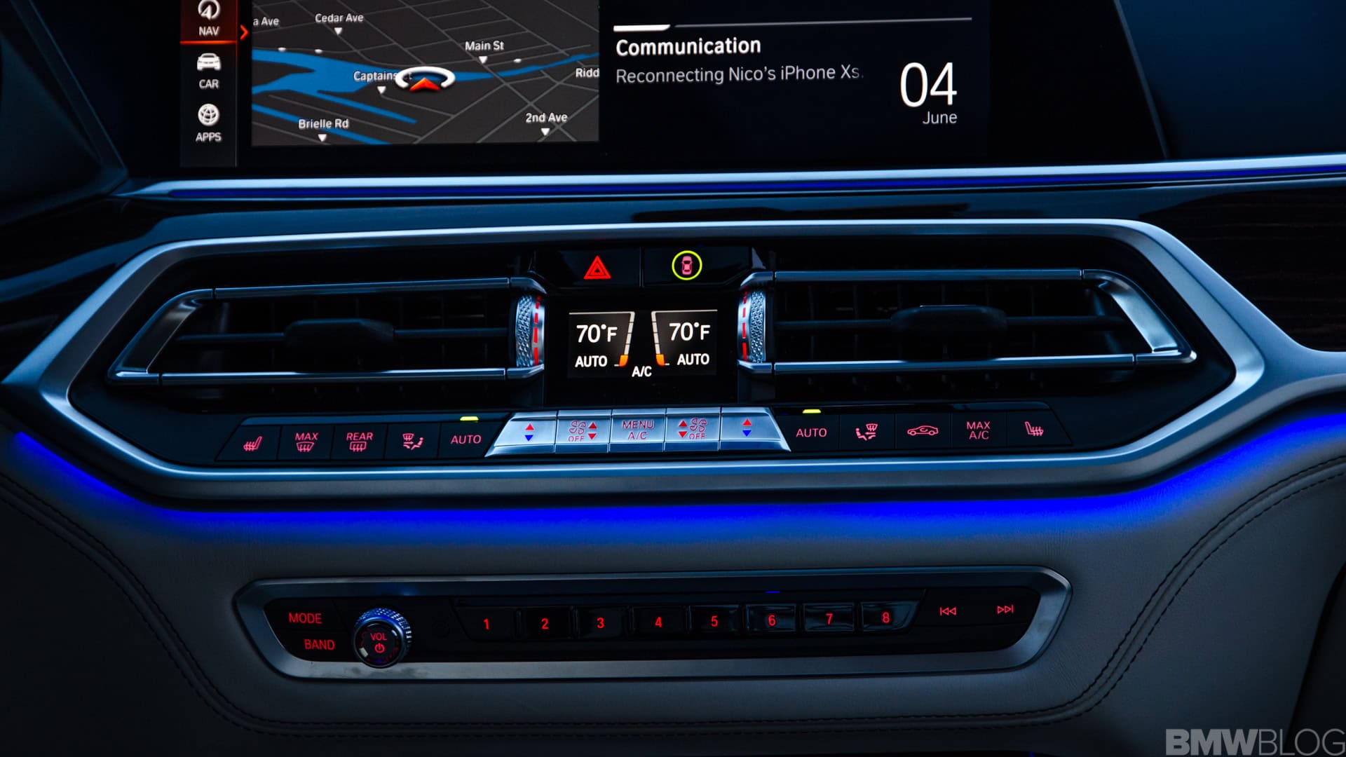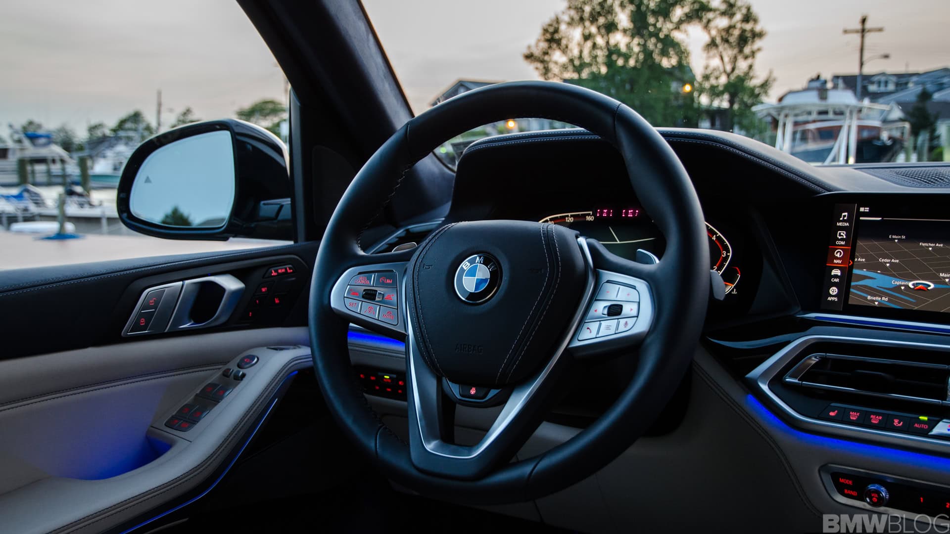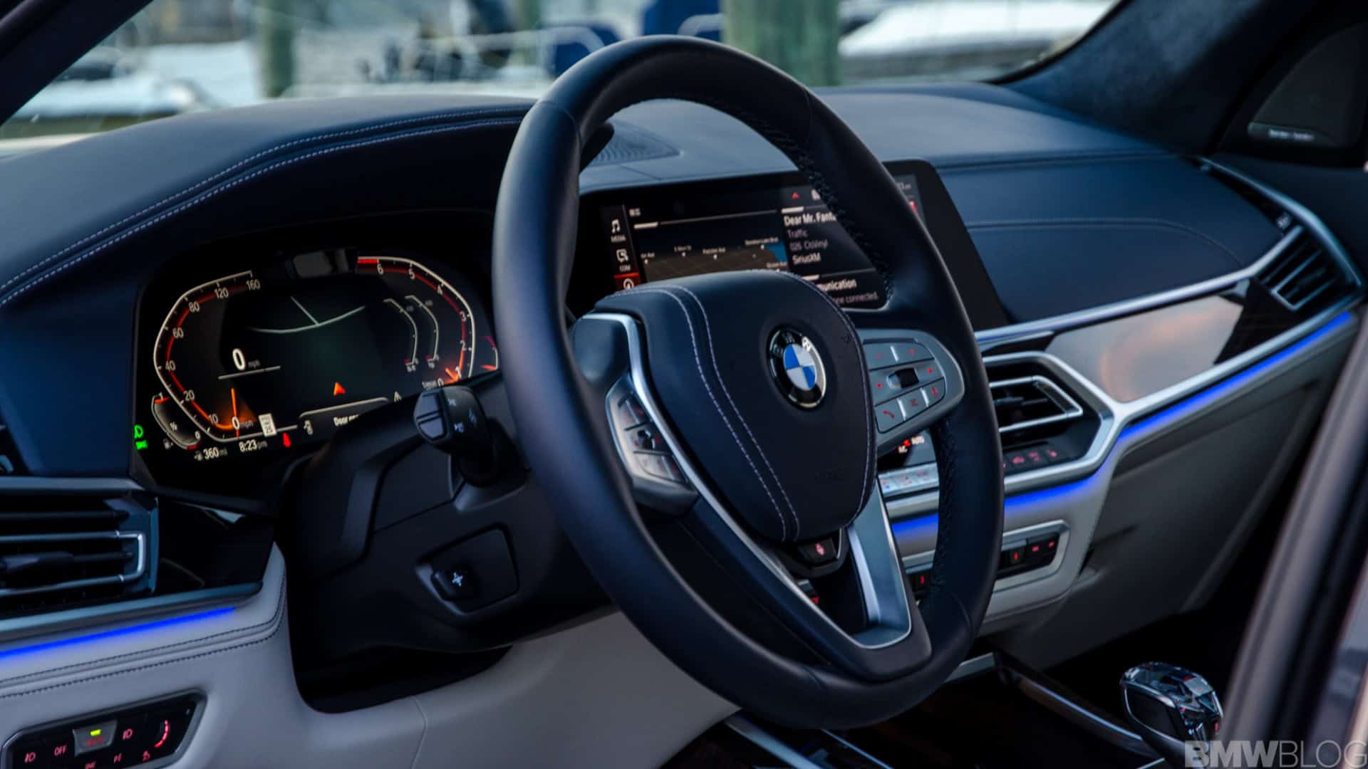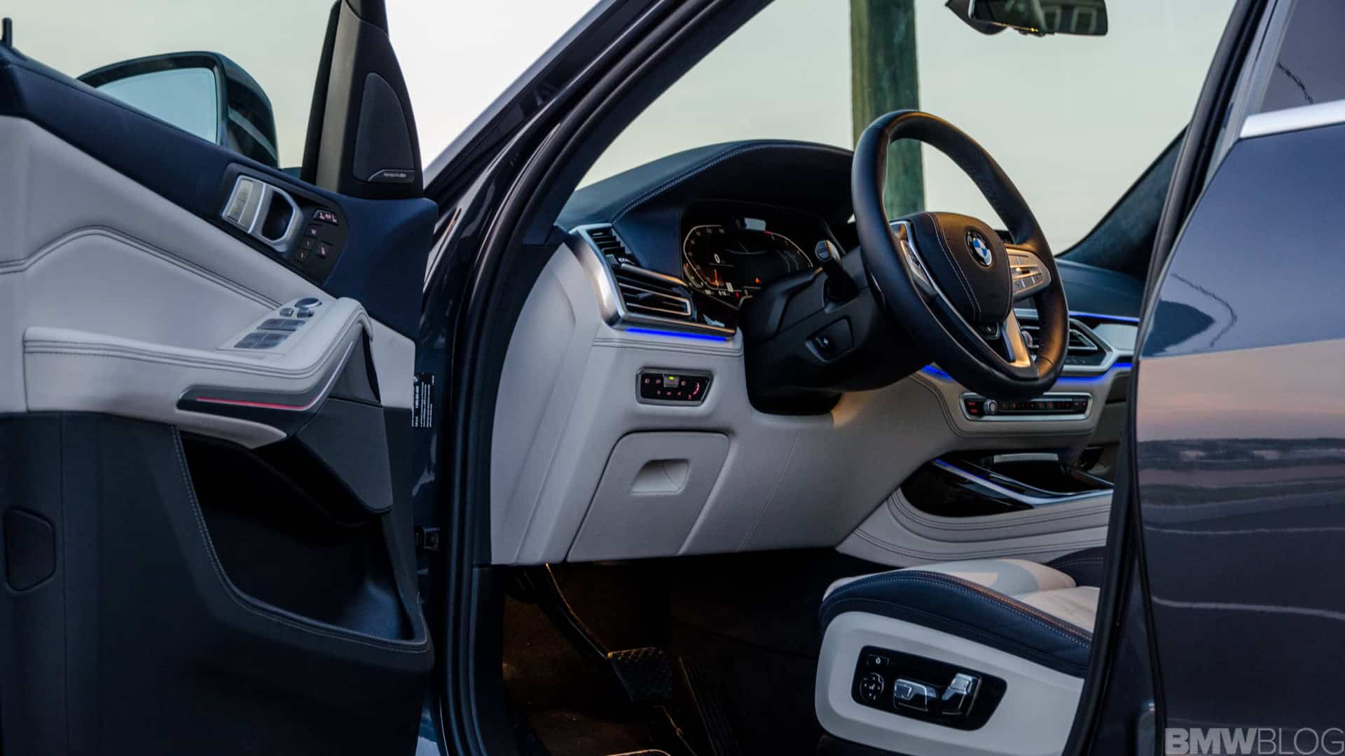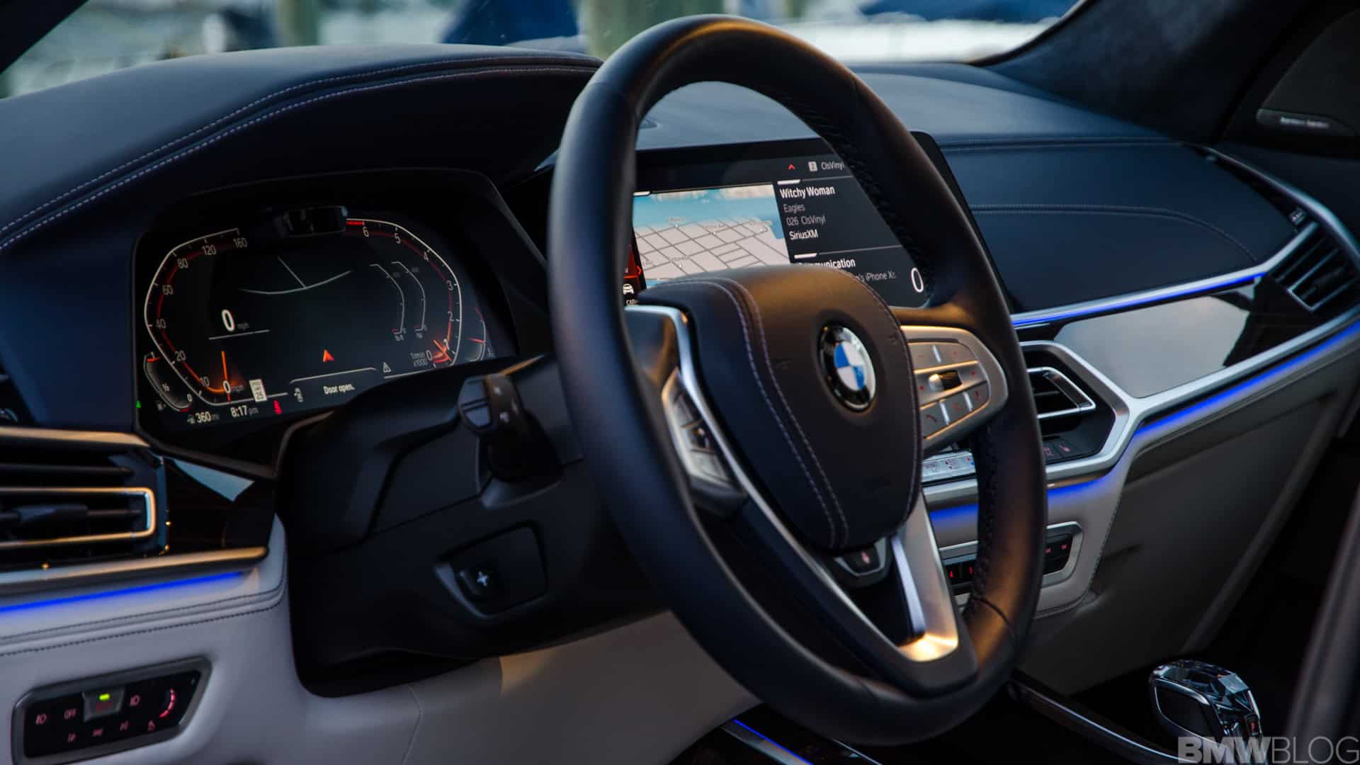 Prior to actually setting off, it’s hard not to take a moment and just enjoy the cabin. Every BMW X7 is lovely inside but the interior of my X7 xDrive50i tester was gorgeous. The Ivory White/Night Blue color combo flat-out works in person. In photos, it might look a bit odd to some but, in the flesh, it’s just lovely. Its Merino leather is soft, the blue Alcantara headliner looks and feels ultra premium and even the blue steering wheel looks great in person; not too blue, just enough.