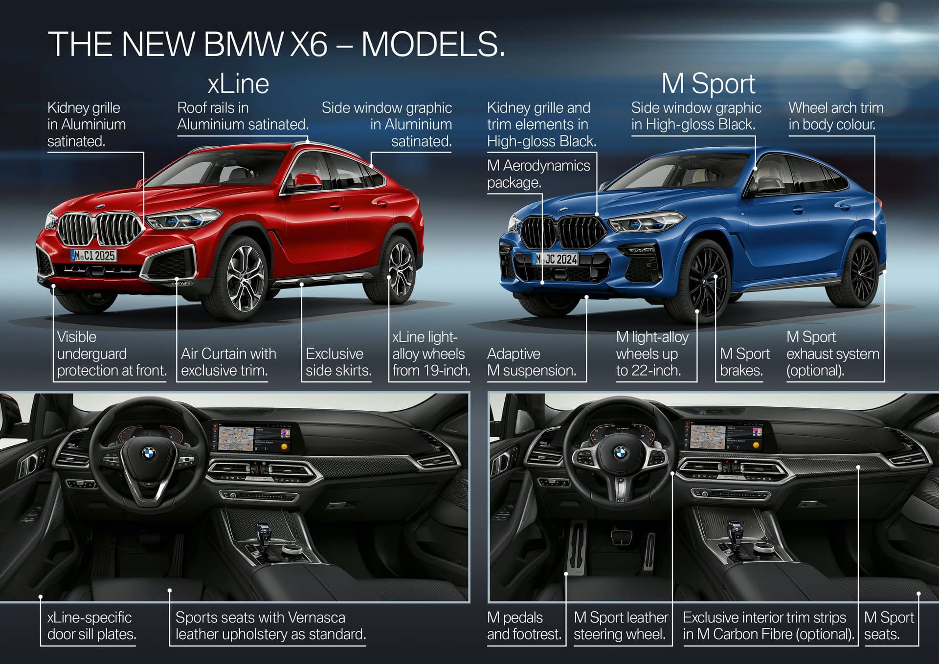MSRP pricing starts at $64,300 for the new 2020 X6 sDrive40i, $66,600 for the X6 xDrive40i and $85,650 for the X6 M50i. Pricing does not include $995 Destination.