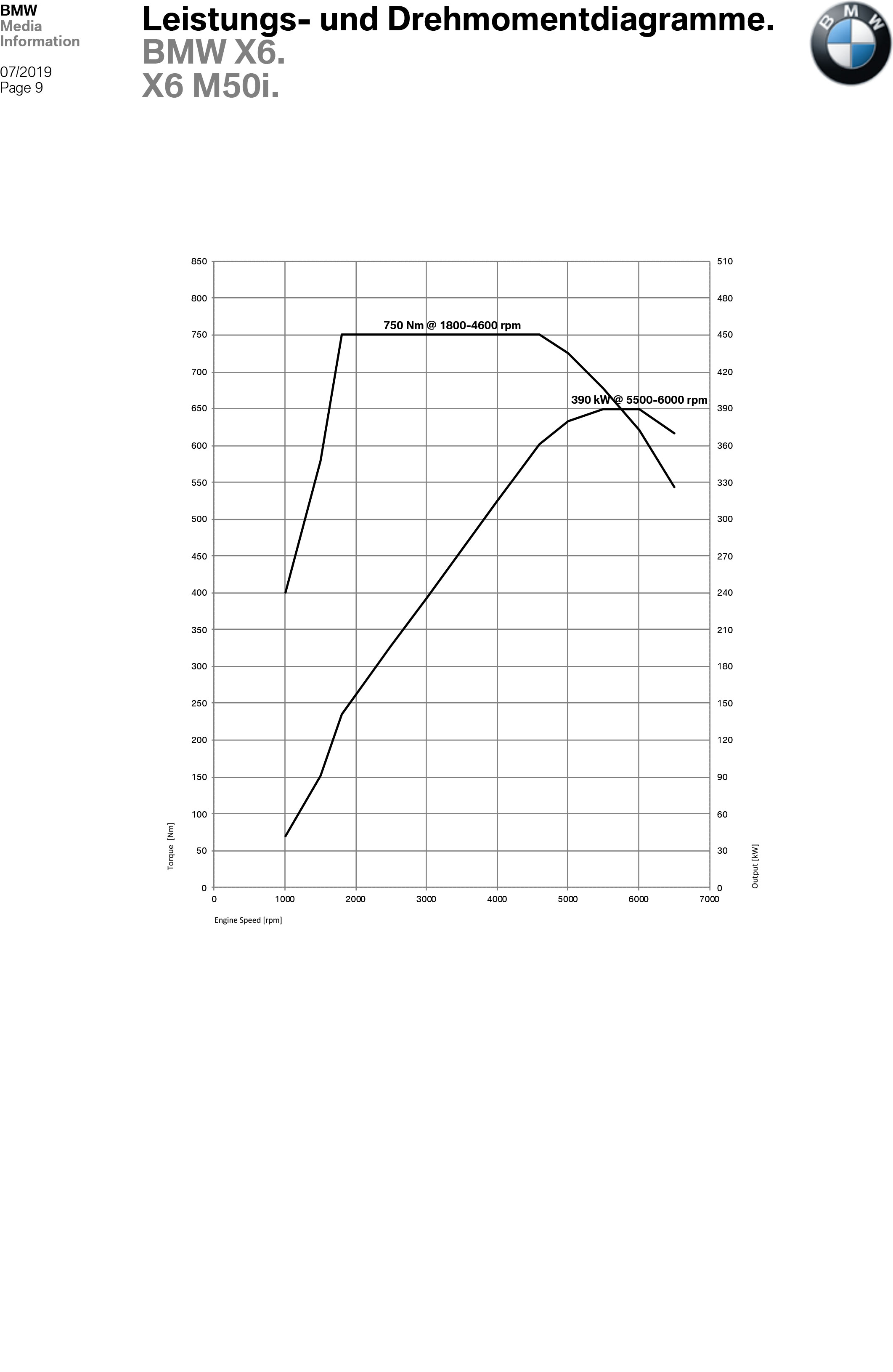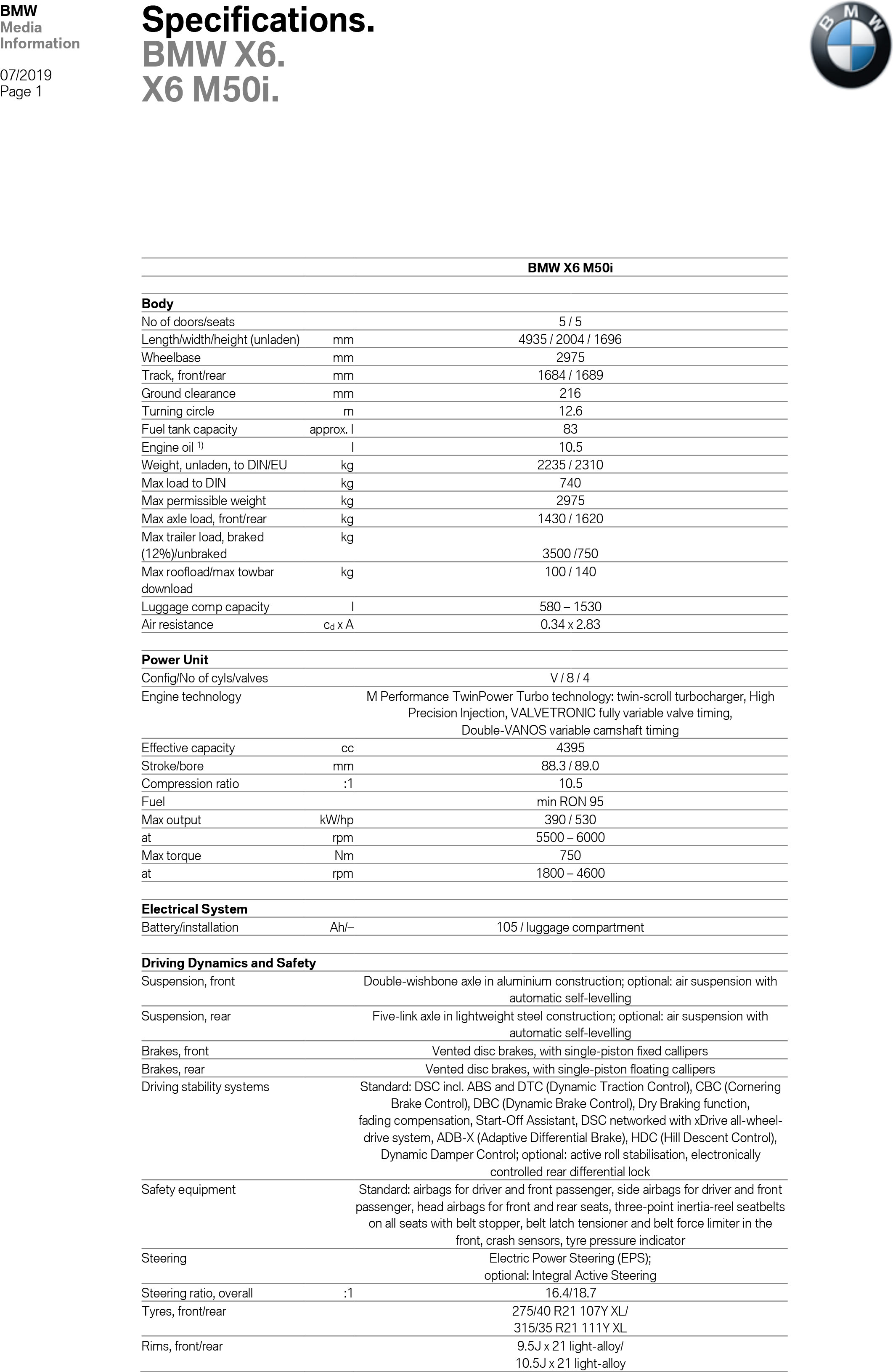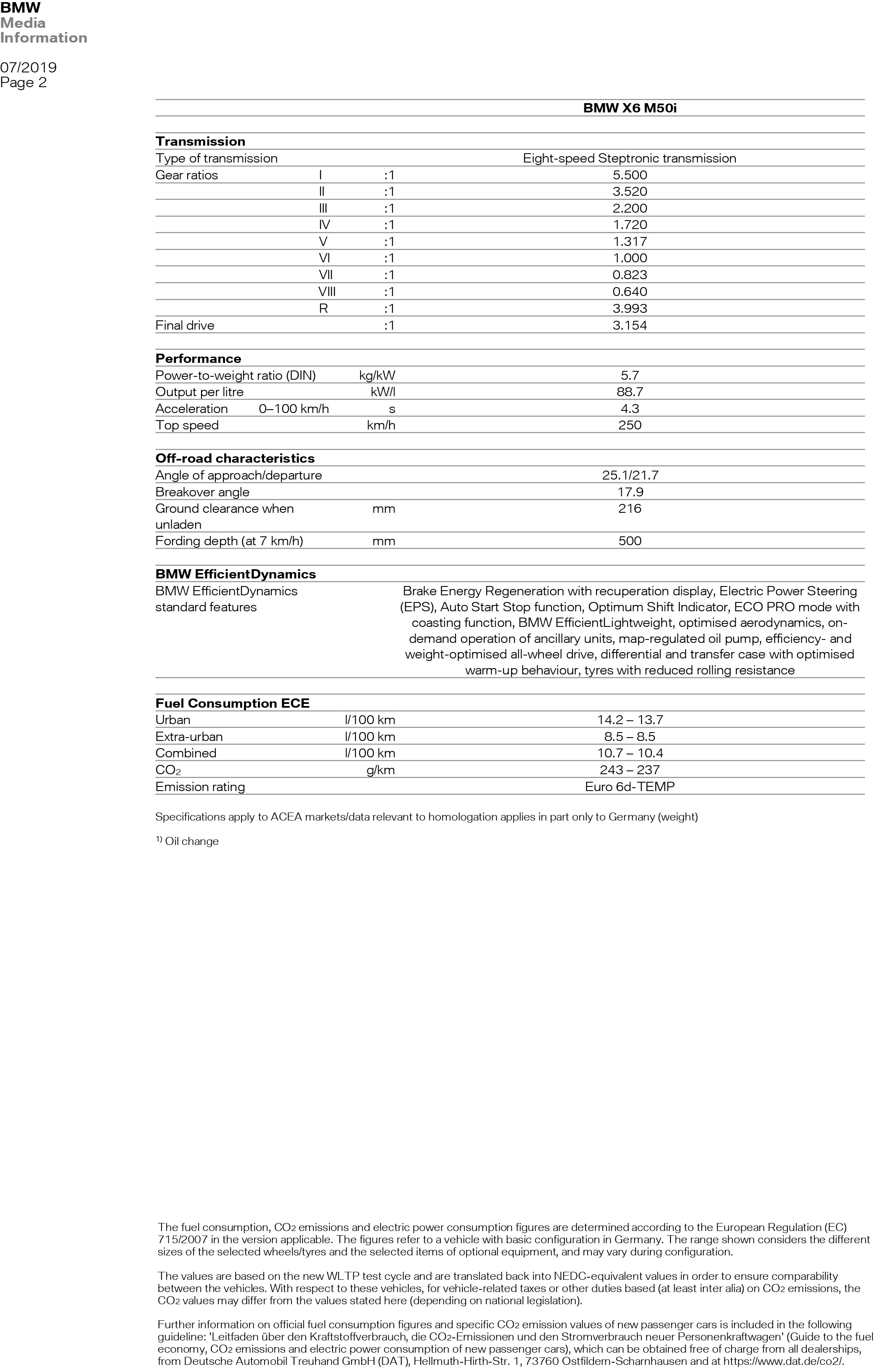 X6 M50i: 530 PS | 750 Nm | 4,3 s | 250 km/h | 10,4-10,7 l/100 km