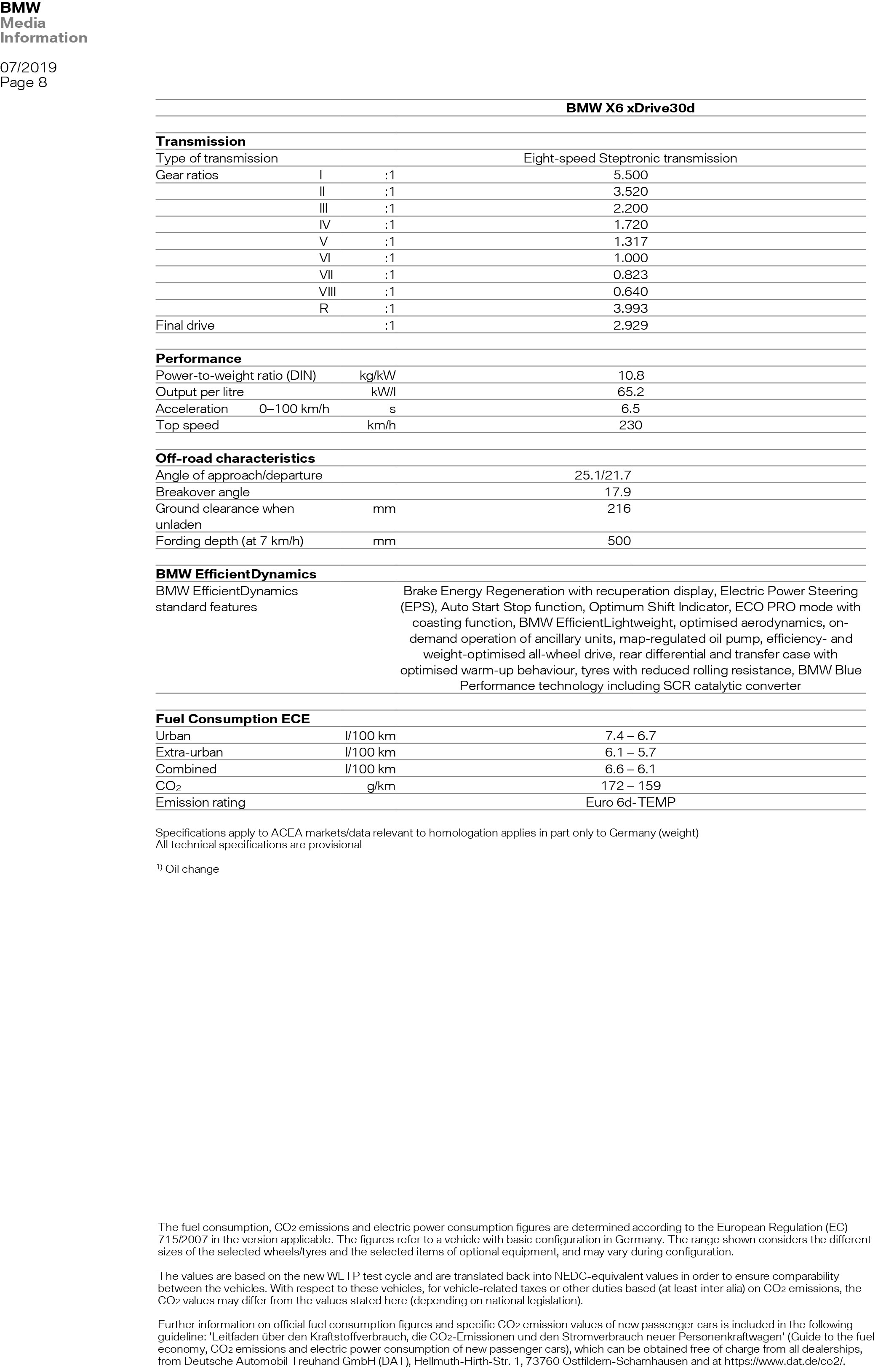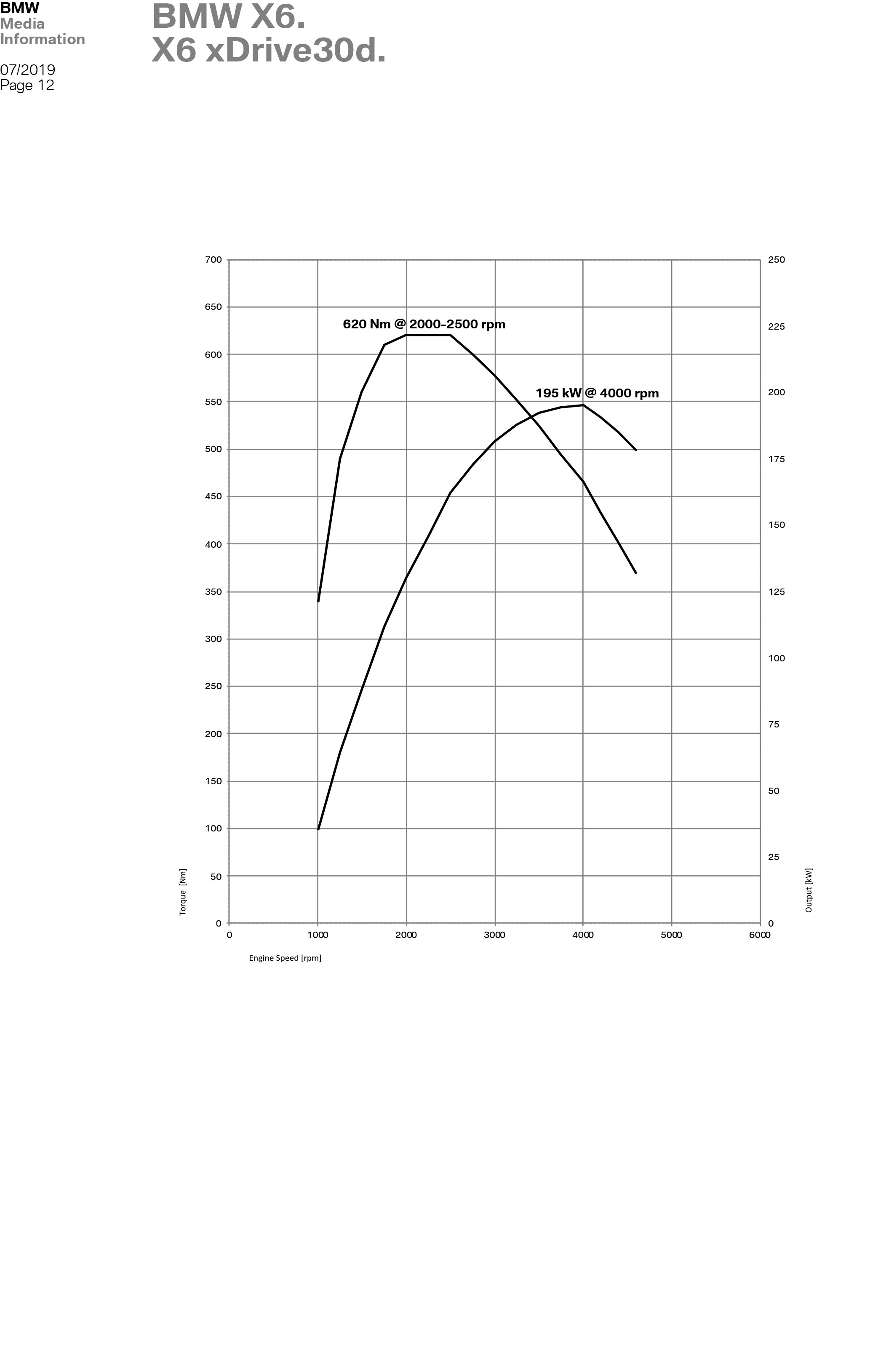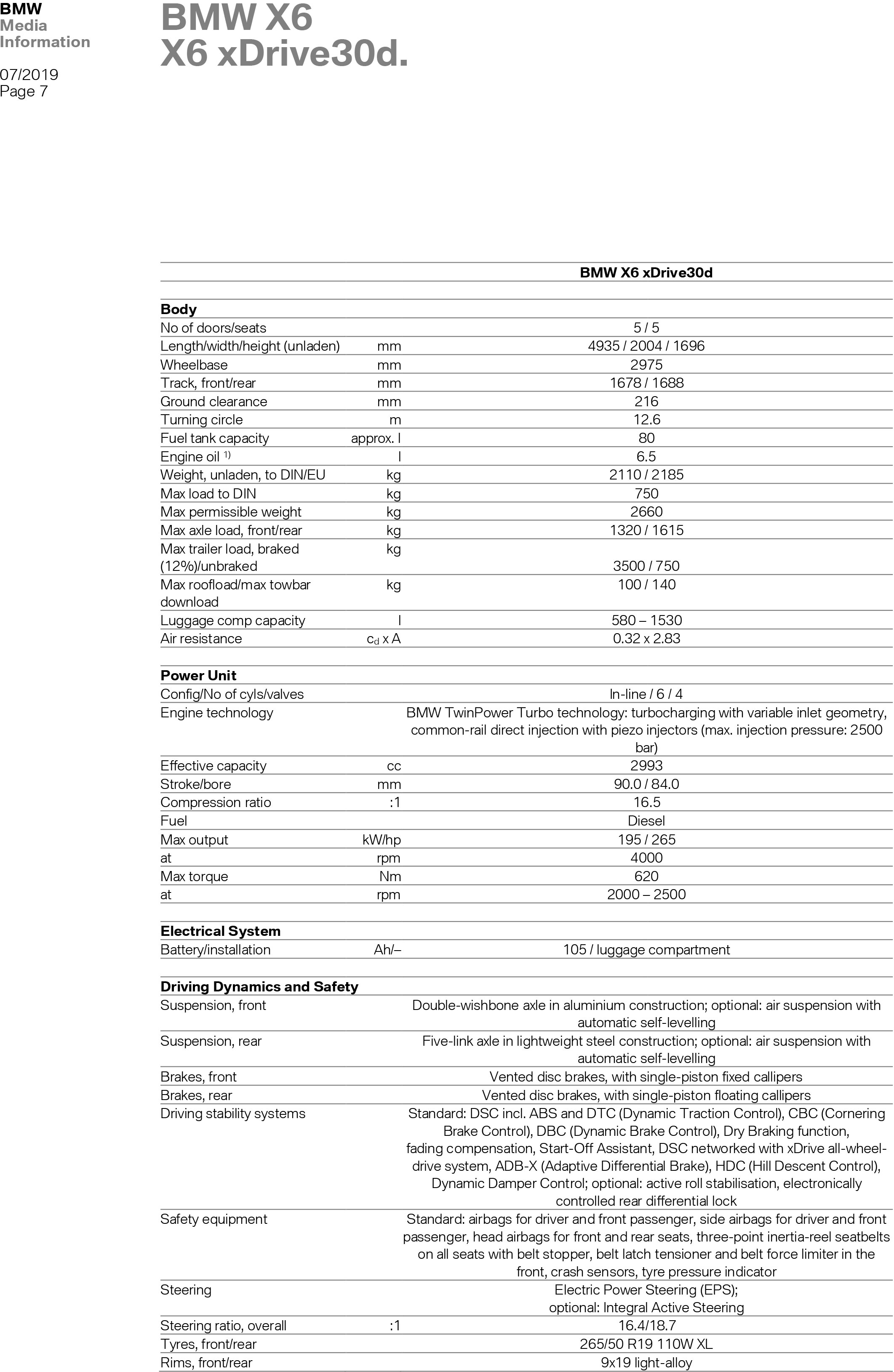 X6 xDrive30d: 265 PS | 620 Nm | 6,5 s | 230 km/h | 6,1-6,6 l/100 km