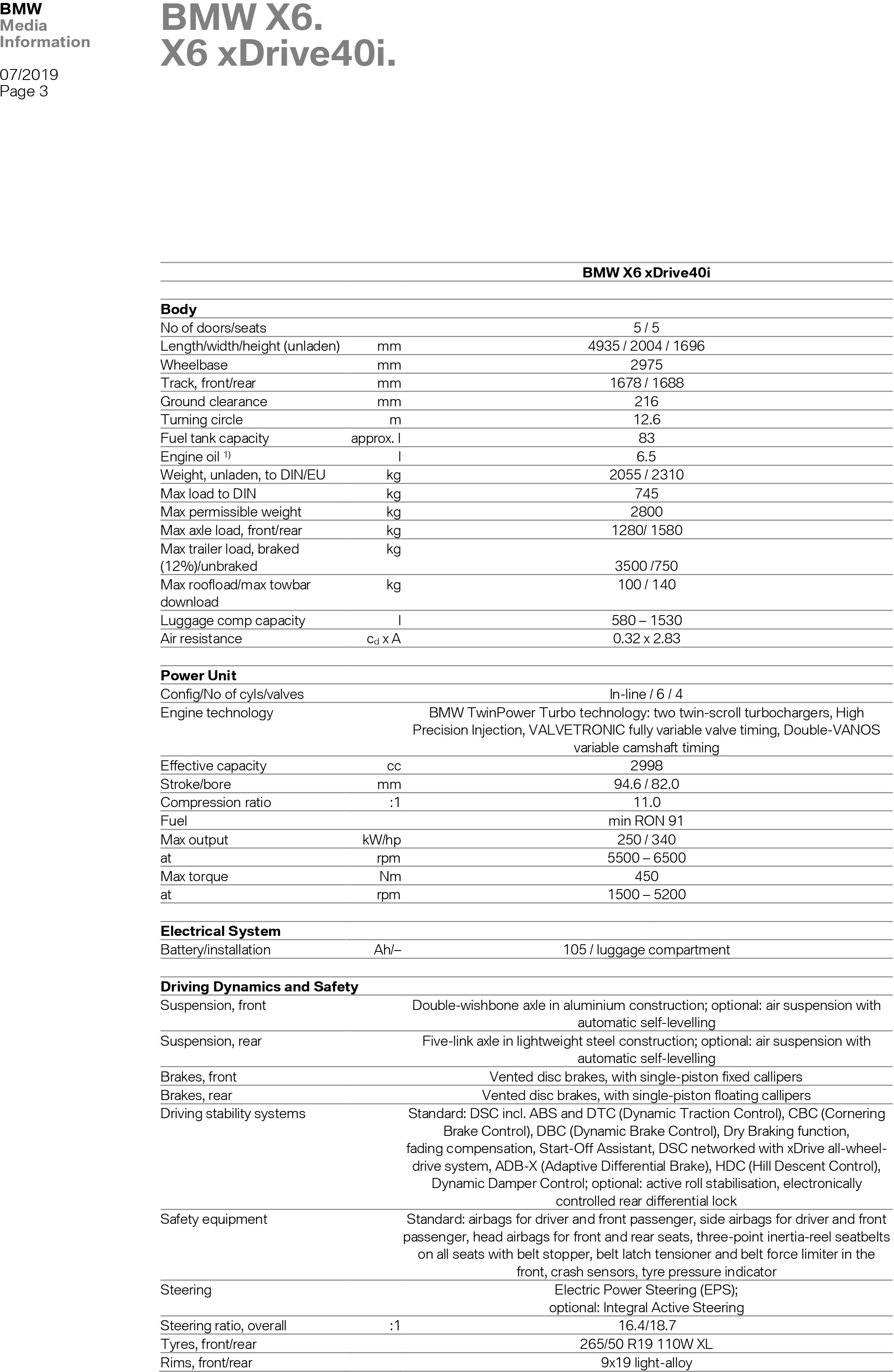 X6 xDrive40i: 340 PS | 450 Nm | 5,5 s | 250 km/h | 8,o-8,6 l/100 km