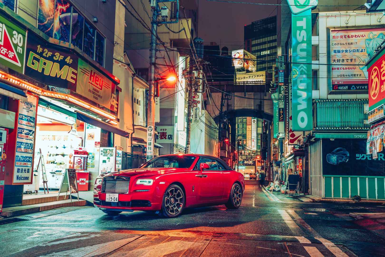 British photographer Mark Riccioni shot his Dawn Black Badge expedition in Akihabara, the hive of tech and gaming, filled with neon signs which look stunning against the car’s Magma Red paint. The third perspective comes from photographer Darren Chan. Darren, brought up surrounded by the city lights of Singapore, was drawn first to the vivid glow of Shinjuku where Wraith Black Badge was shot.