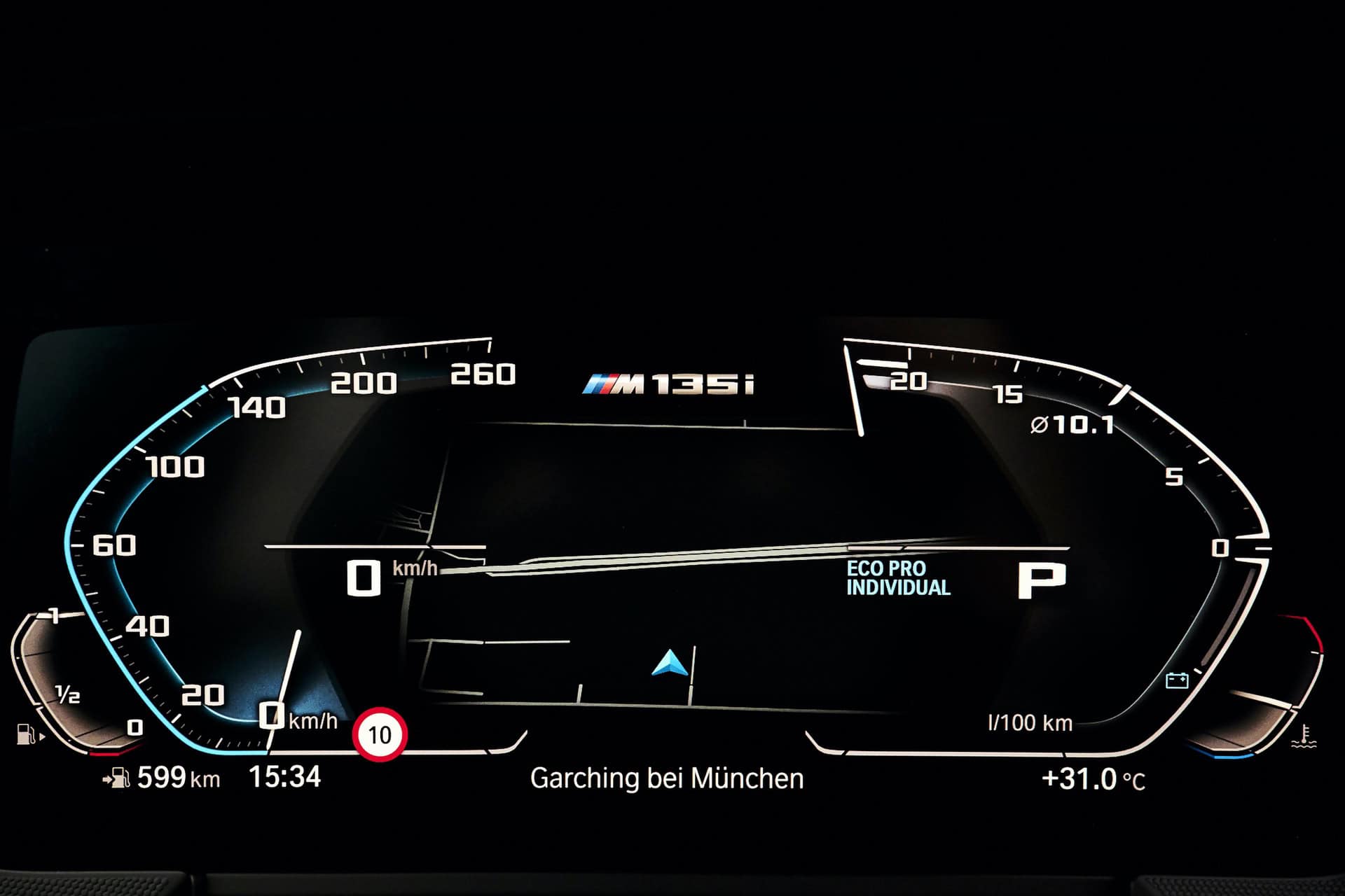 On the fast German highway, the M135i xDrive is effortless, as you’d expect. The engine pulls hard and quickly, and the grip is always there. Shifting is smooth and precise, and it’s still our preferred choice in modern BMWs. The xDrive system with all the additional tech around it felt natural on straight lines, regardless of hard you tried to understeer the front axle. The only downside of the front-wheel drive architecture in daily driving is an increase of the turn radius from 10.9 to 11.5.