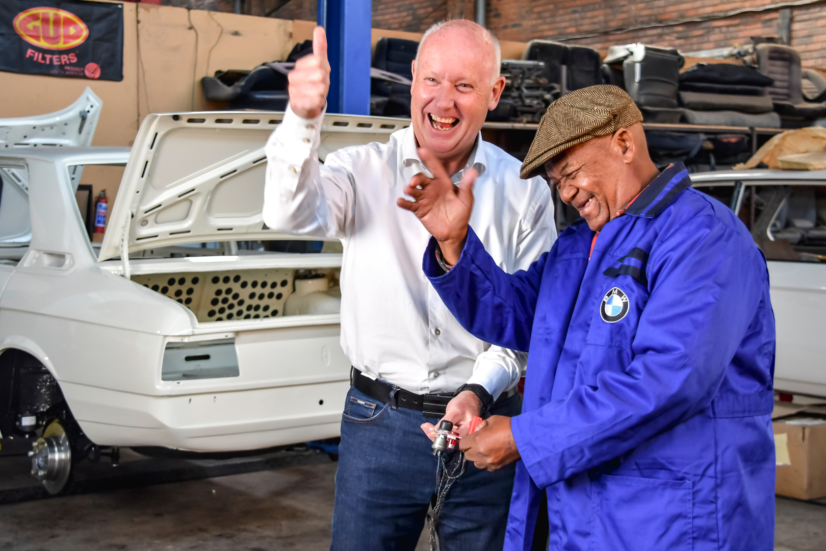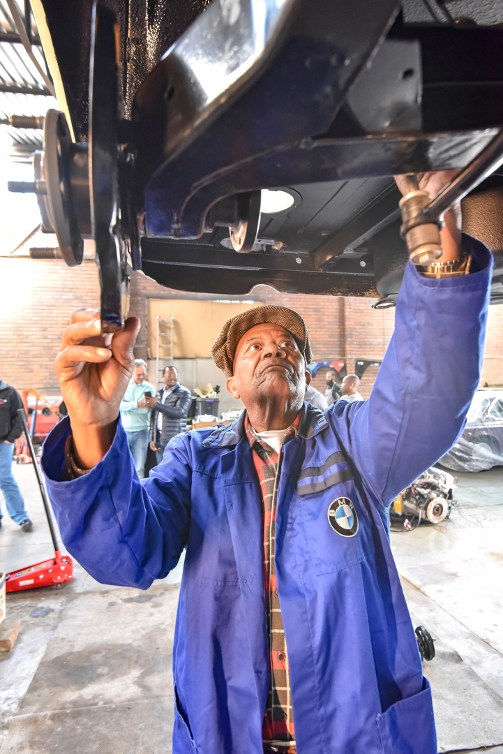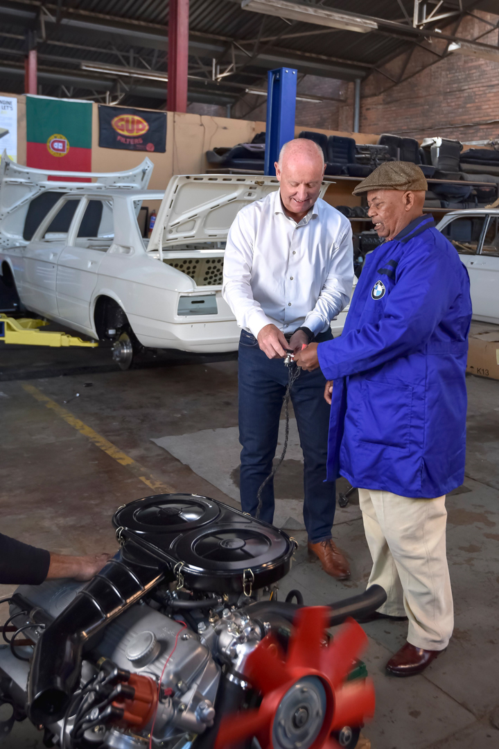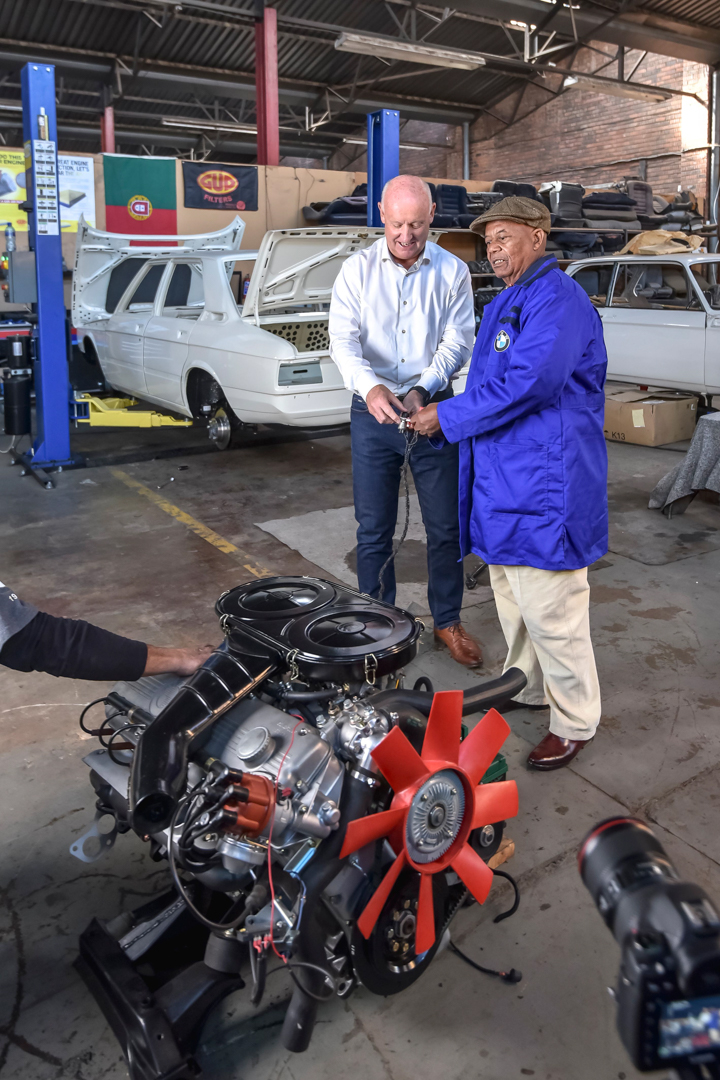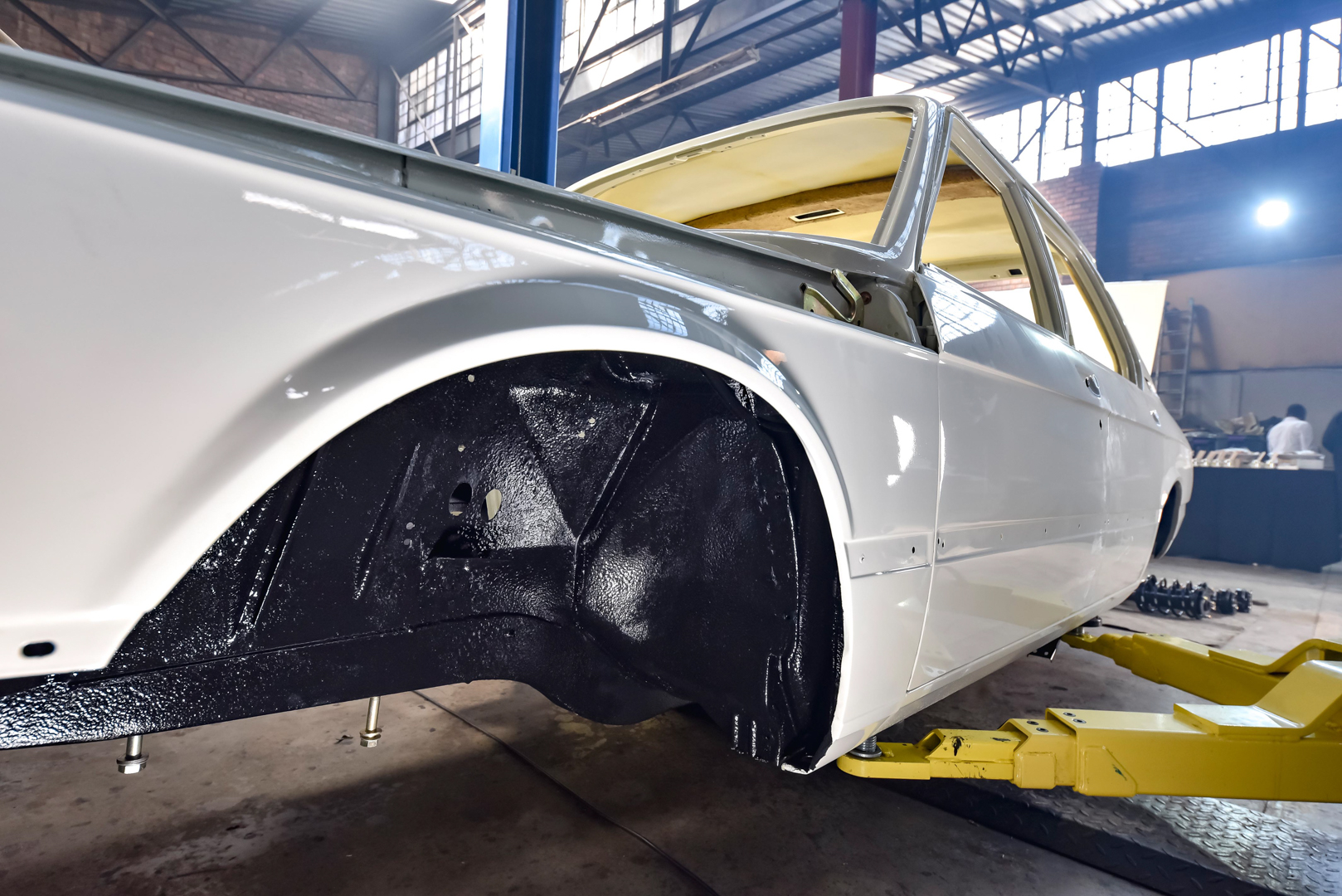 At the beginning of July 2019, car number 100 was painted in its original Chamonix White Metallic paint. On July 12, the body shell was mounted to its suspension, creating a fully restored rolling chassis. The bare engine has also been fully rebuilt and restored and was also started for the first time in more than twenty years. Not only that but the engine was started by Mr Tim Abbott, CEO of BMW Group South Africa and Sub-Saharan Africa, and Mr William Mokwape, a retired former employee of BMW Group Plant Rosslyn who built the car in 1976. Soon enough, the engine will be installed in the old BMW 530 MLE.