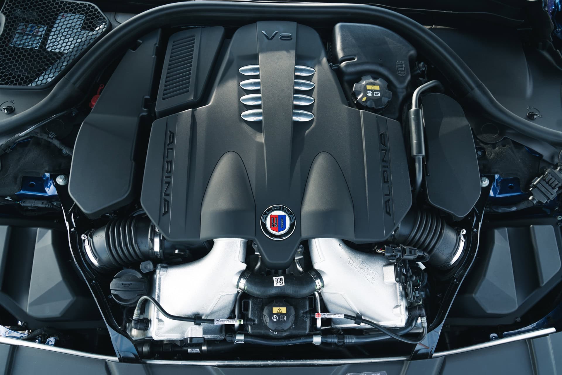 For the facelift BMW 7 Series, ALPINA has thoroughly revised the B7. Especially in the engine compartment, the engineers spent considerable effort to enhance the already amazing 4.4 liter V8 biturbo. The new B7 features larger diameter propellers in its turbos, for better torque down low, tweaked engine management and newer intercoolers.
