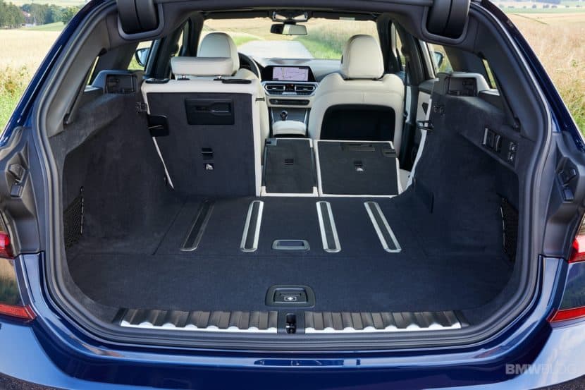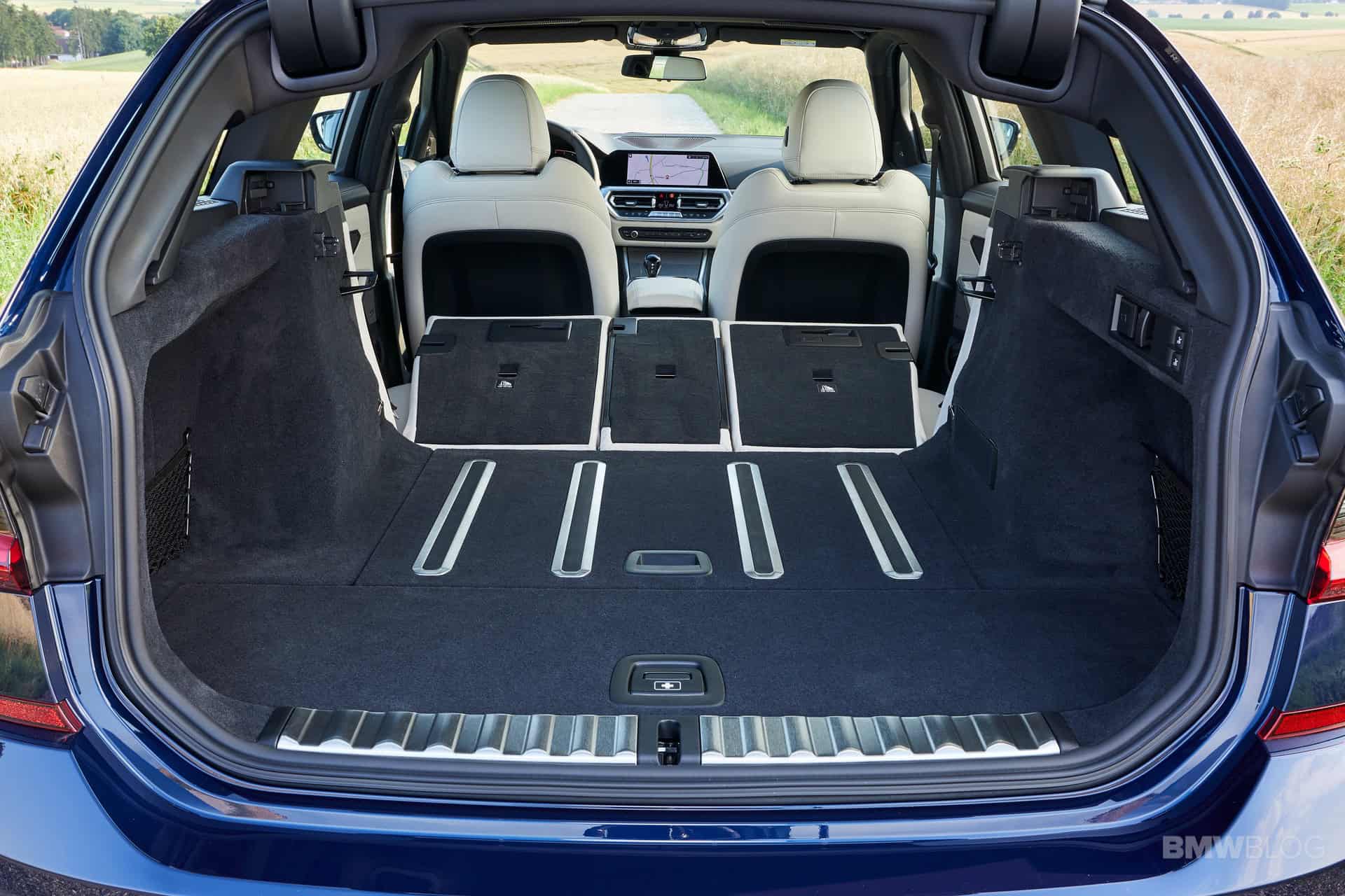 The new G21 can swallow 500 liters of cargo with the rear seats occupied, which is 5 liters more than the old F31. With the rear seats folded down, total cargo volume increases to 1,510 liters. Like with other BMW wagons, the rear window can open independently of the tailgate, which makes loading just a bag or two into the trunk much easier.