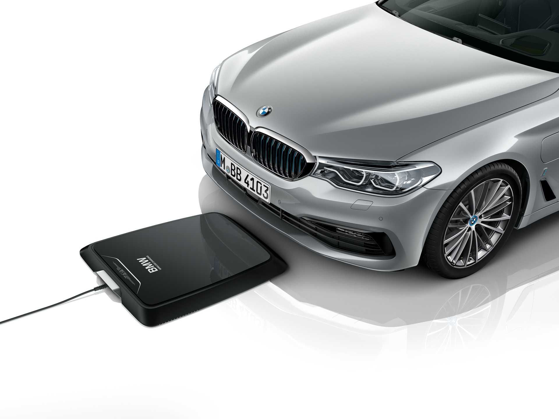 BMW Wireless Charging consists of an Inductive Charging Station (GroundPad), which can be installed either in a garage or outdoors, and a secondary vehicle component (CarPad) fixed to the underside of the vehicle. The contactless transfer of energy between the GroundPad and CarPad is conducted over a distance of around three inches. The GroundPad generates a magnetic field. In the CarPad an electric current is induced, which then charges the high-voltage battery.