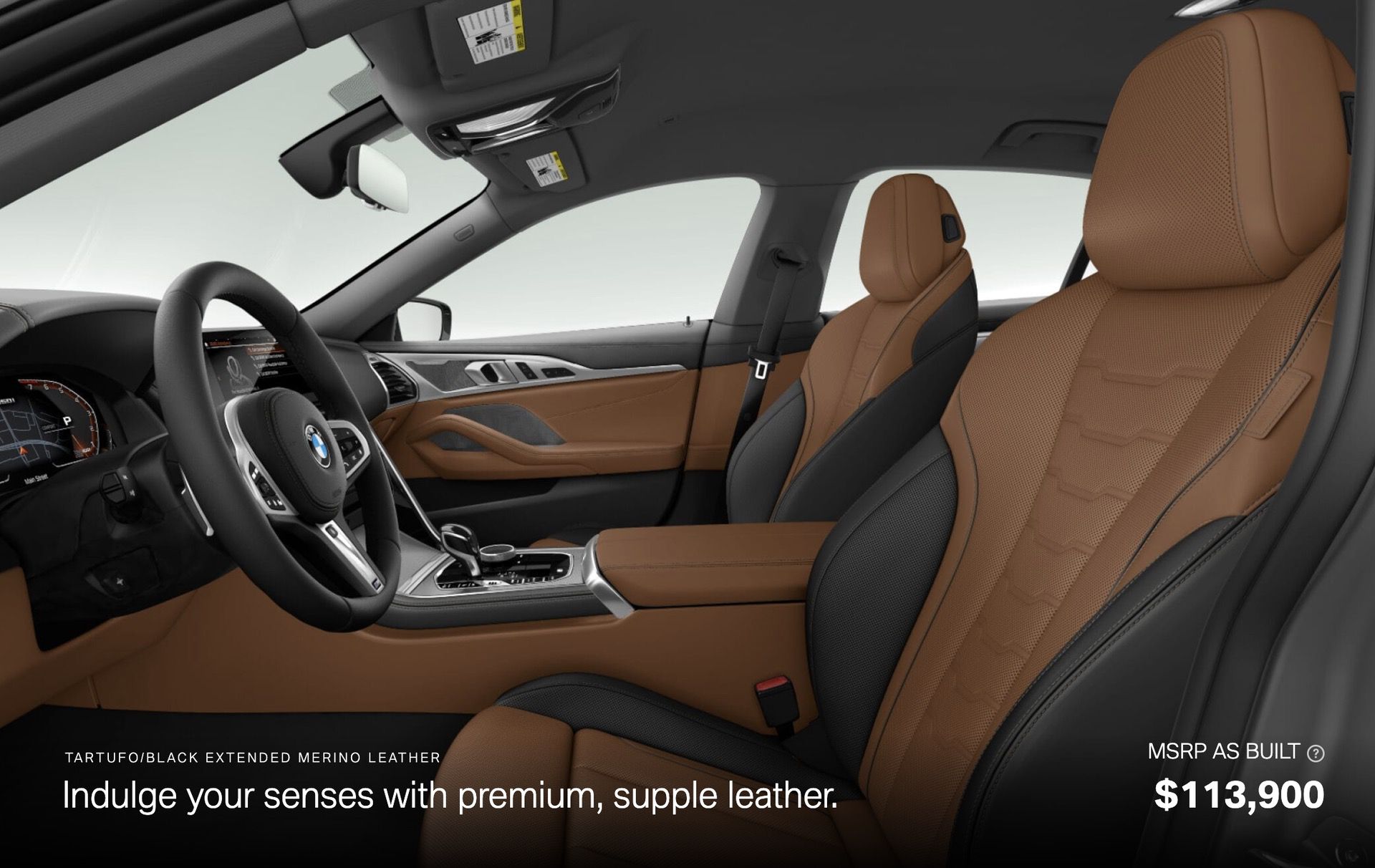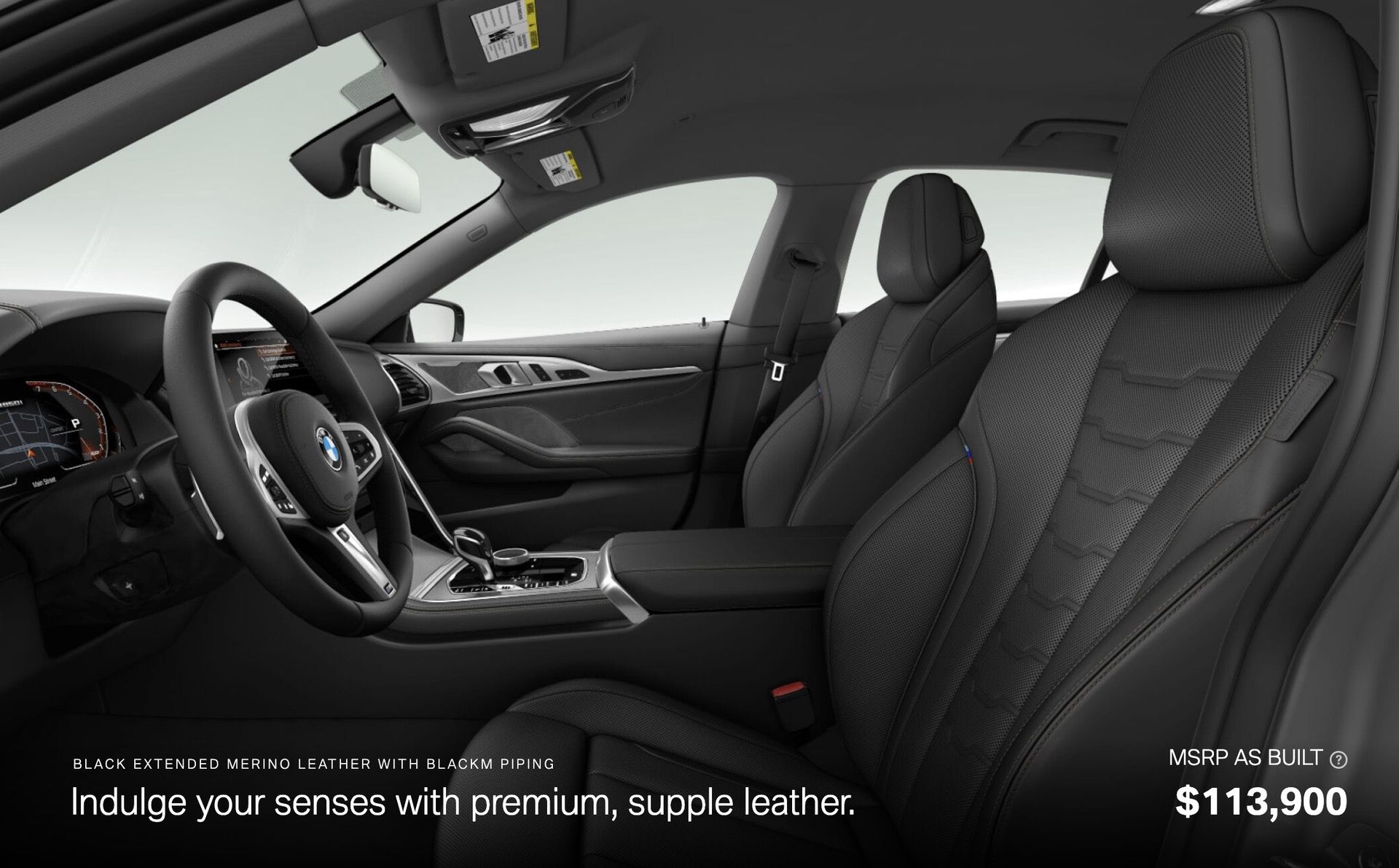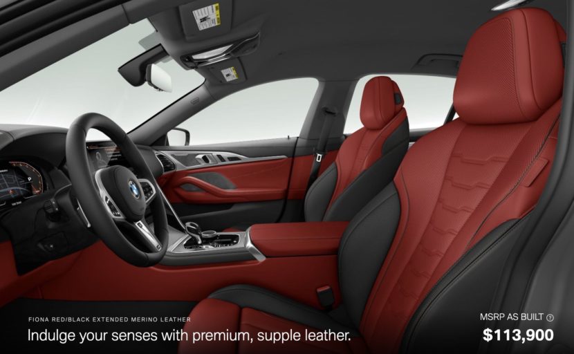 The leather options are also quite extensive with a choice of 15 different upholsteries. The 840i and 840i xDrive Gran Coupes feature standard Vernasca leather in either Black, Ivory White or Cognac. Optional on these two models and standard on the M850i xDrive Gran Coupe is Individual Extended Merino Leather in Black Ivory White, Cognac and two-tone Night Blue/Black, Tartufo/Black and Fiona Red/Black. BMW Individual Full Merino leather is optional on all three Gran Coupe models and includes Black, Cognac, Ivory White, Ivory White/Night Blue, Ivory White/Tartufo, Night Blue/Black, Tartufo/Black and Fiona Red/Black.