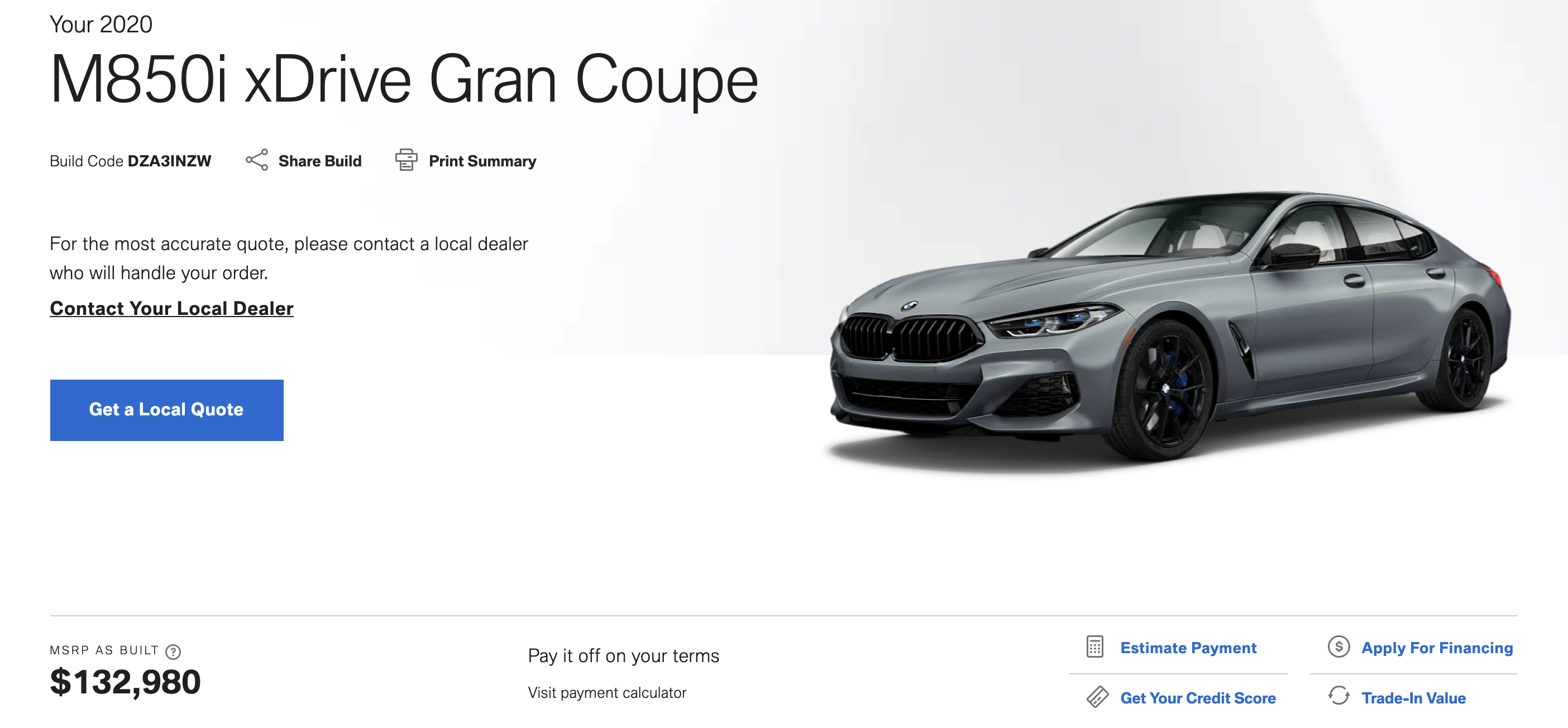 Just for fun, we maxed out a 2020 BMW M850i xDrive and the total bill came up to $133,000, give or take a few cents.