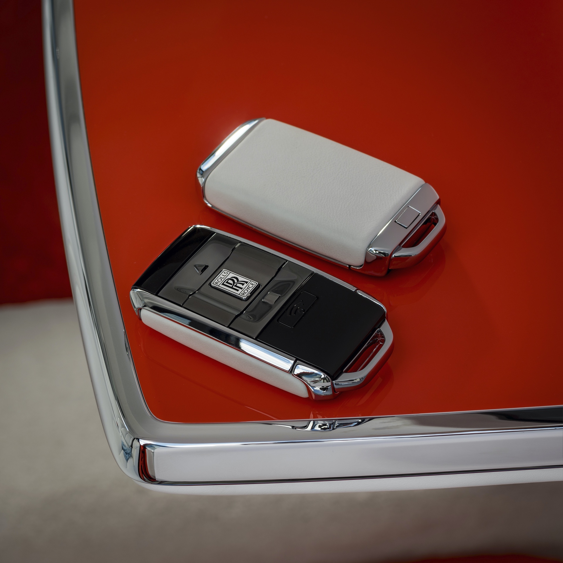 Working with the Bespoke design and color development team at the Home of Rolls-Royce, Goodwood, Mr. Fux challenged the designers to match the exterior color to a vibrant orange ladies wrap that caught his eye in South Florida. He purchased the wrap and had it delivered to the Rolls-Royce Bespoke Collective.