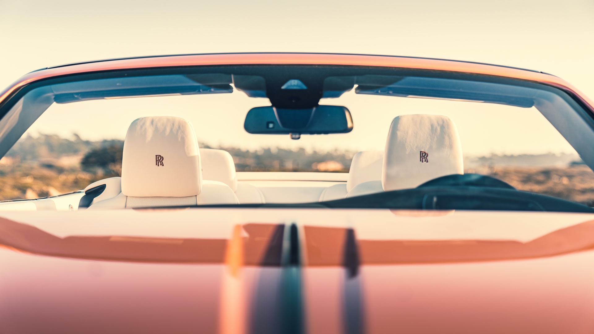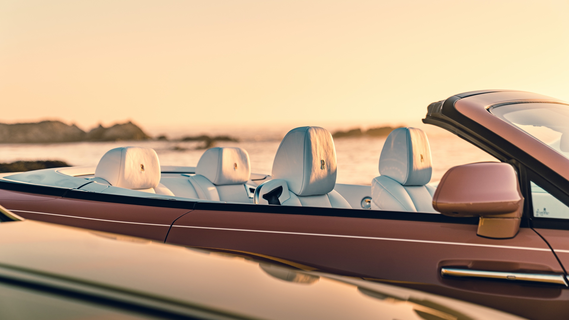 The drophead creation among the collection is Dawn Black Badge in Coral Solid which showcases the Bespoke finish that can only come after seven coats of paint and more than nine hours of hand polishing in the Surface Finish Centre at the Home of Rolls-Royce, Goodwood. The new pastel color carries over to the Bespoke Aero Cowling, giving Dawn a colorful yet aggressive exterior. The Dawn Black Badge interior is finished in Artic White and Sunset carrying over the visual imagery of the blooming northern California hills and valleys.