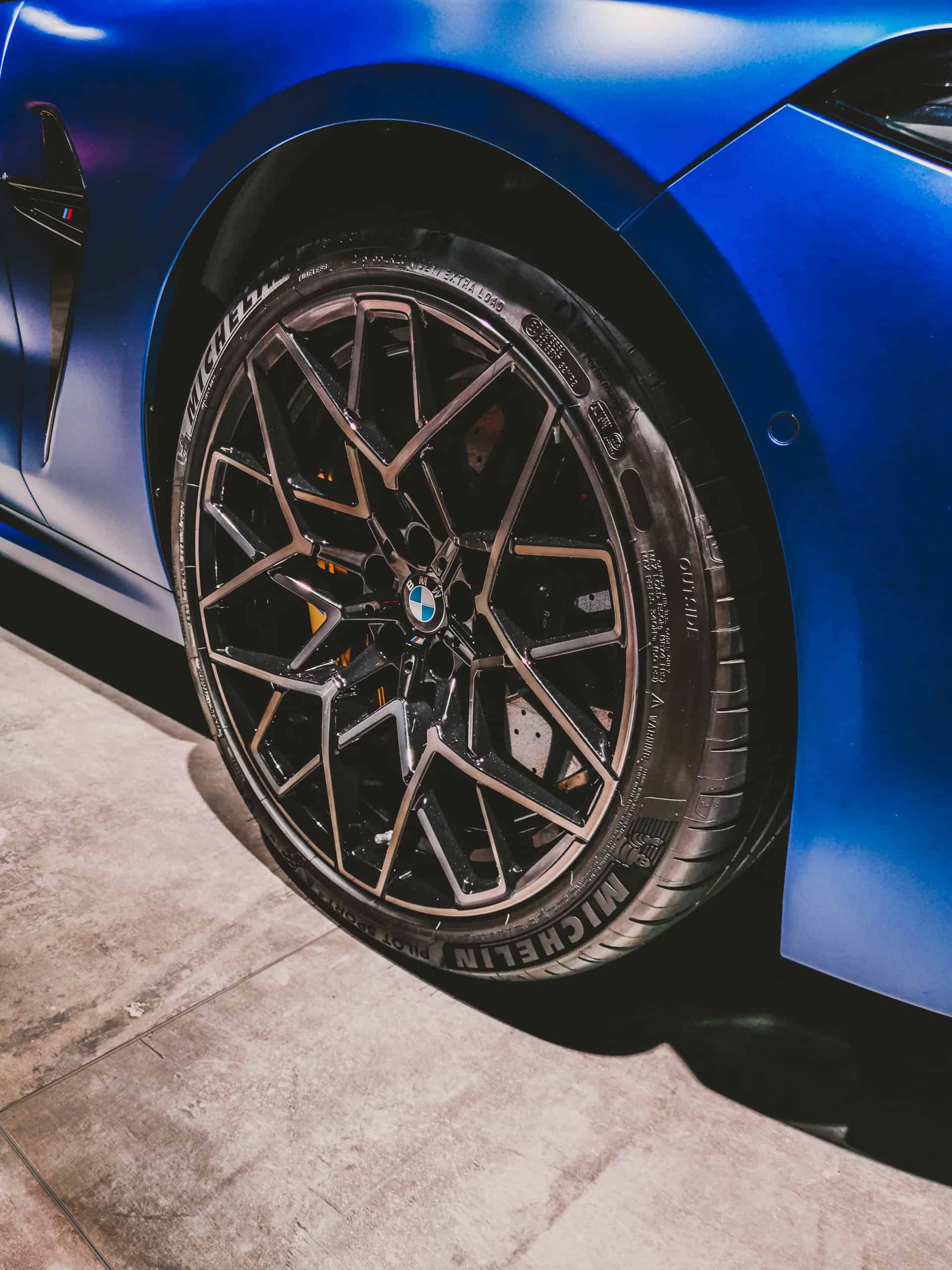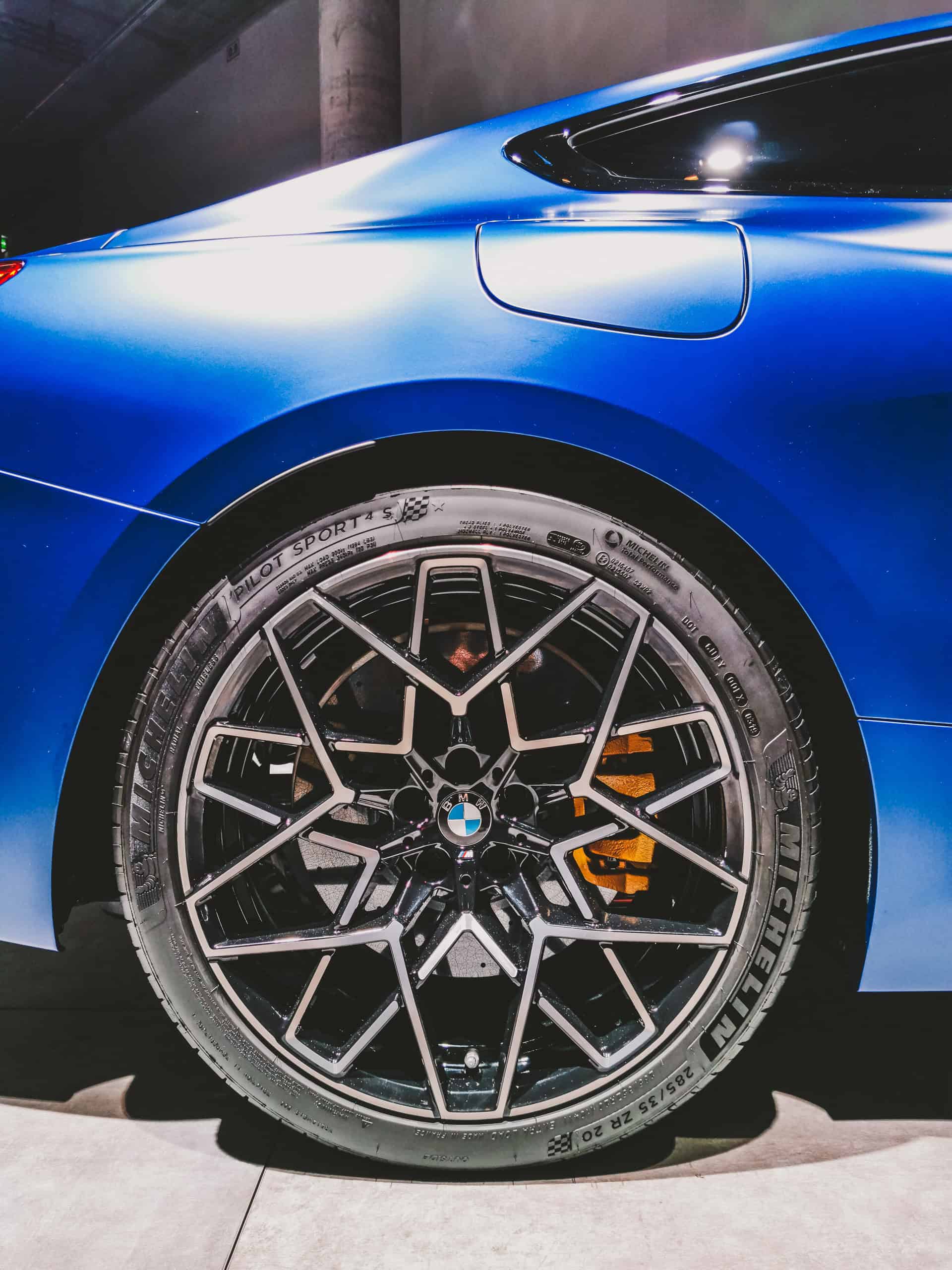 In Frankfurt, the BMW M8 Competition in Frozen Marina Bay Blue presents itself with the 20-inch light-alloy wheels star spoke 813 M Bicolor, which are available as a free-of-charge option.
