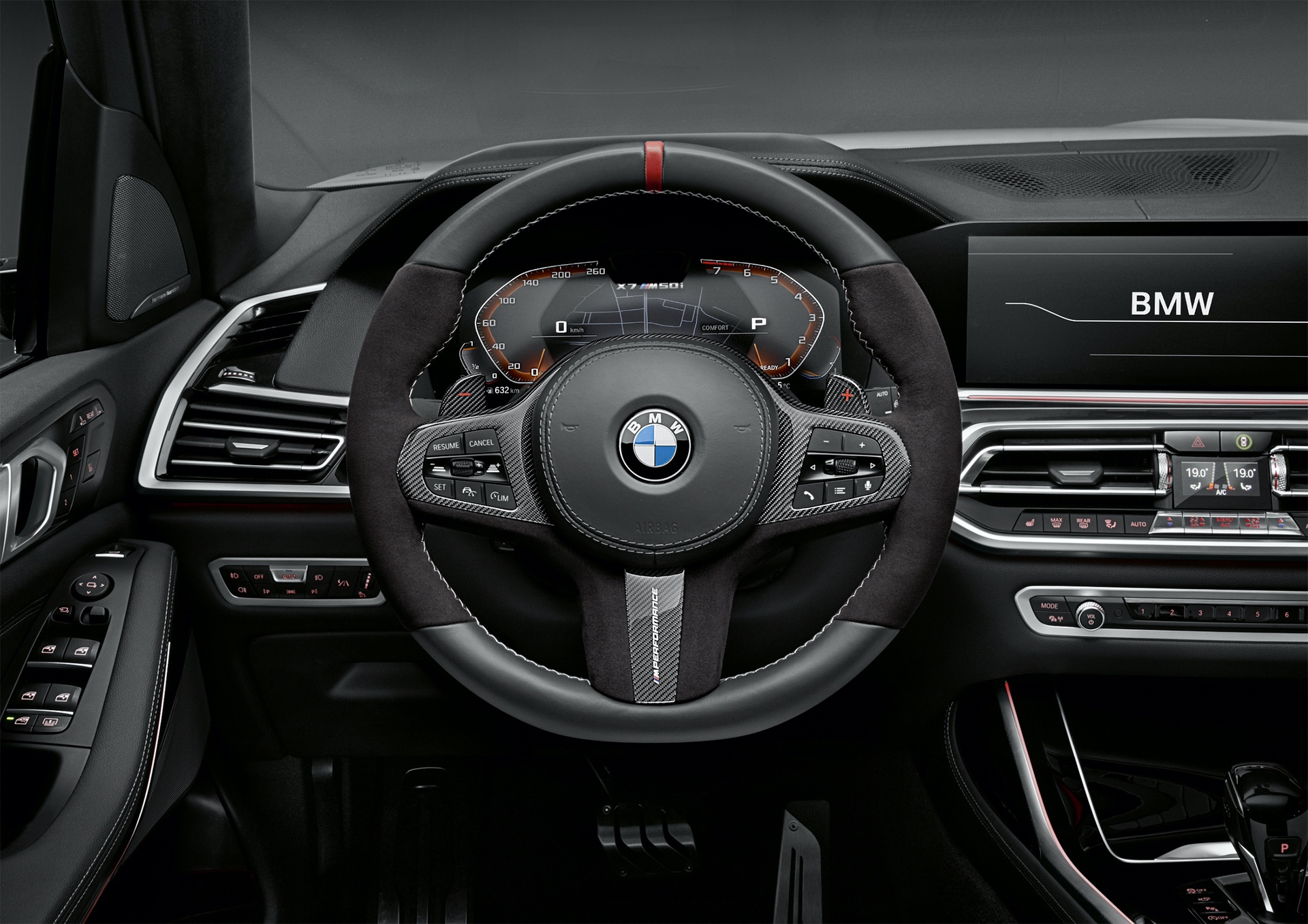 An alcantara-covered M Performance Steering Wheel with the red stitching at 12 o’clock and double stitching seals the deal.