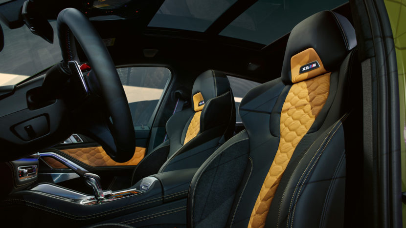 Inside, the F96 X6 M also boasts BMW Individual touches. The hardcore SAC receives the special Midrand Beige/Black leather upholstery with M-specific guilting and contrasting stitching.