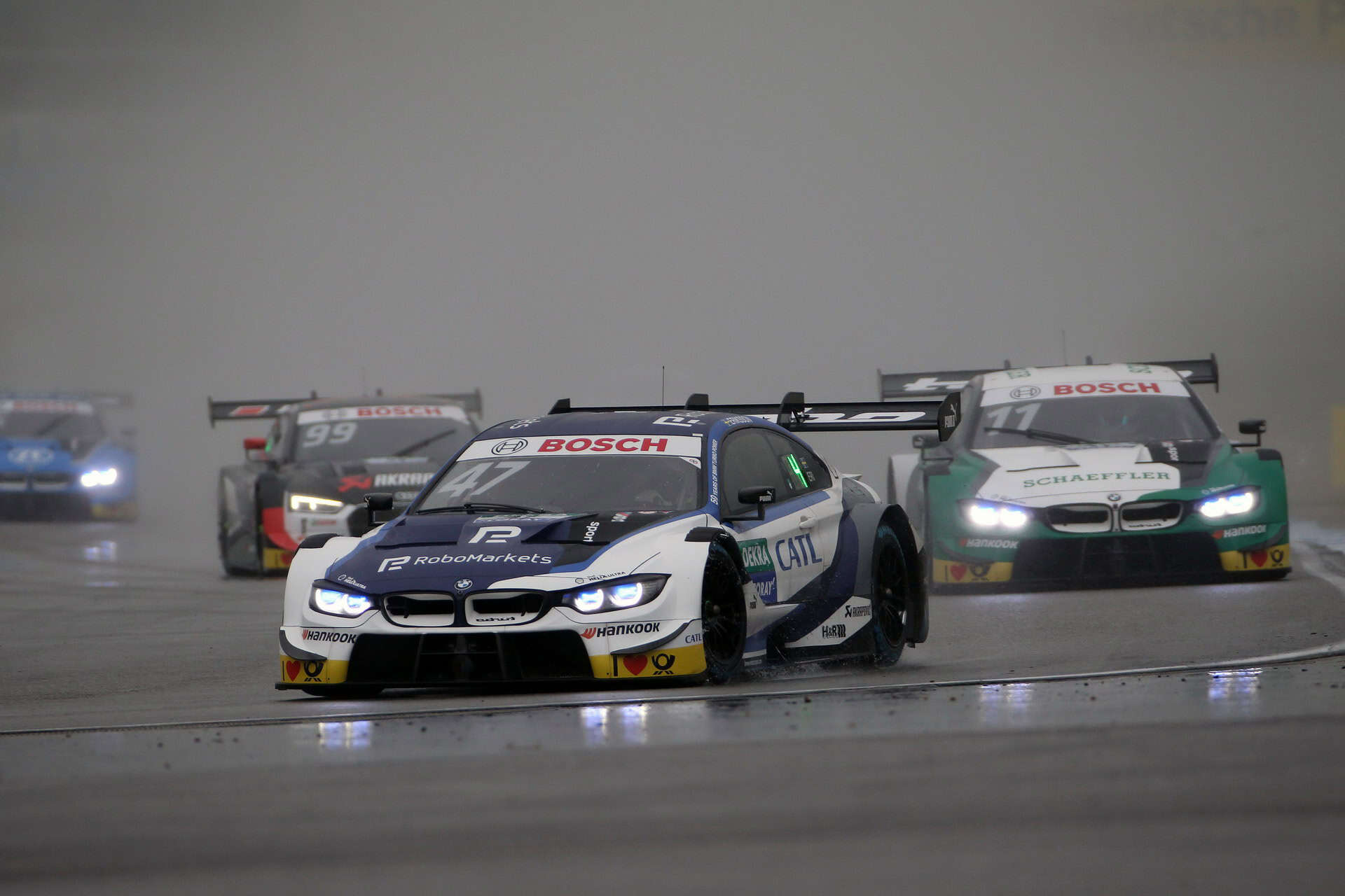 Finishing today’s finale fourth, Timo Glock recognized the challenging circumstances and his struggle for achieving a better performance at Hockenheim: “That was a shame. I didn’t get it right at the start and my wheels were spinning. I had big problems with grip all the time and it was very difficult to get the tyres working in the cold conditions. When I was behind René Rast, my speed was better but whenever I got close enough, so much water came in through the air intake that I lost some engine performance. That meant that I had no chance of overtaking him. At the end, I was involved in a little battle with Jamie Green. Of course, it’s a shame that we just missed out on the podium by finishing fourth. I would have liked to have got there for the guys but it wasn’t quite enough.”