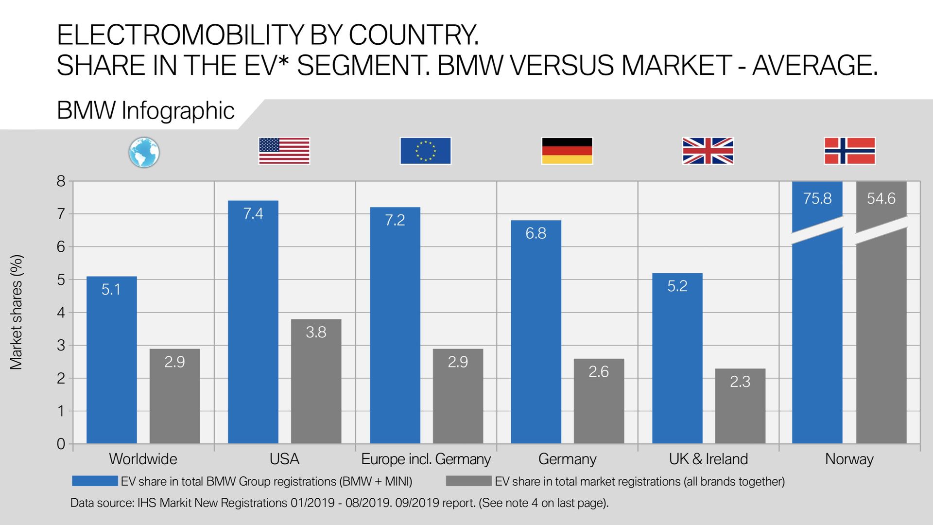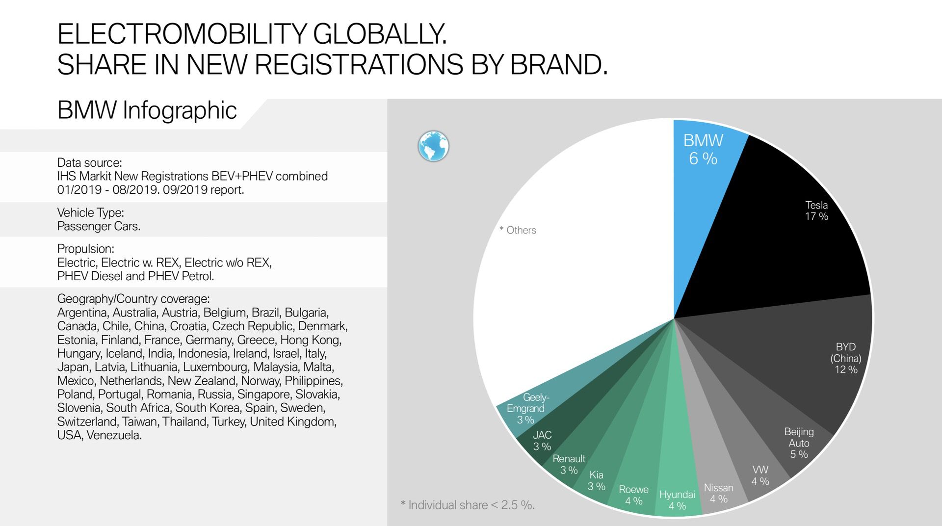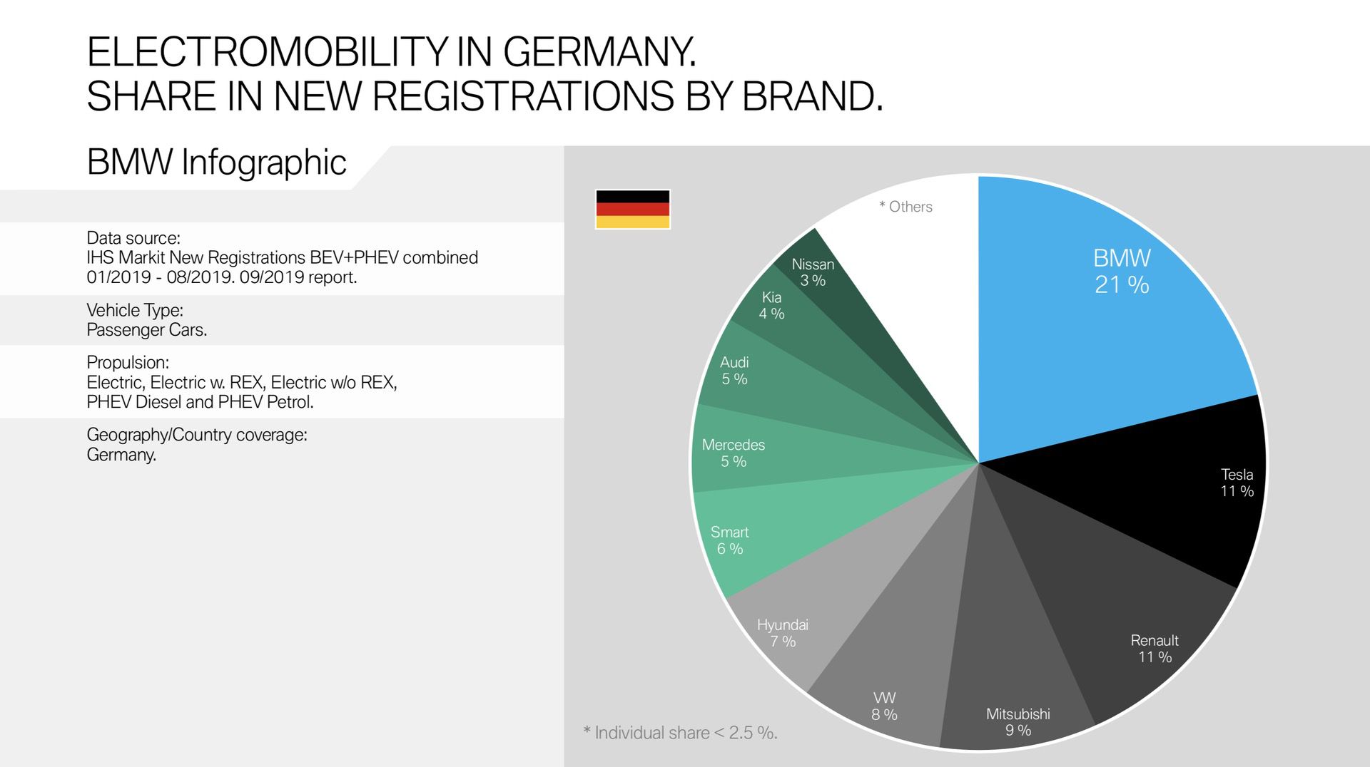 The September 2019 electro-mobility report is now available and shows BMW at the top of the game in some markets. For example, in Germany the Bavarians hold a market share of 21 percent for all the new electric and plug-in hybrid vehicles registrations from January 1, 2019.