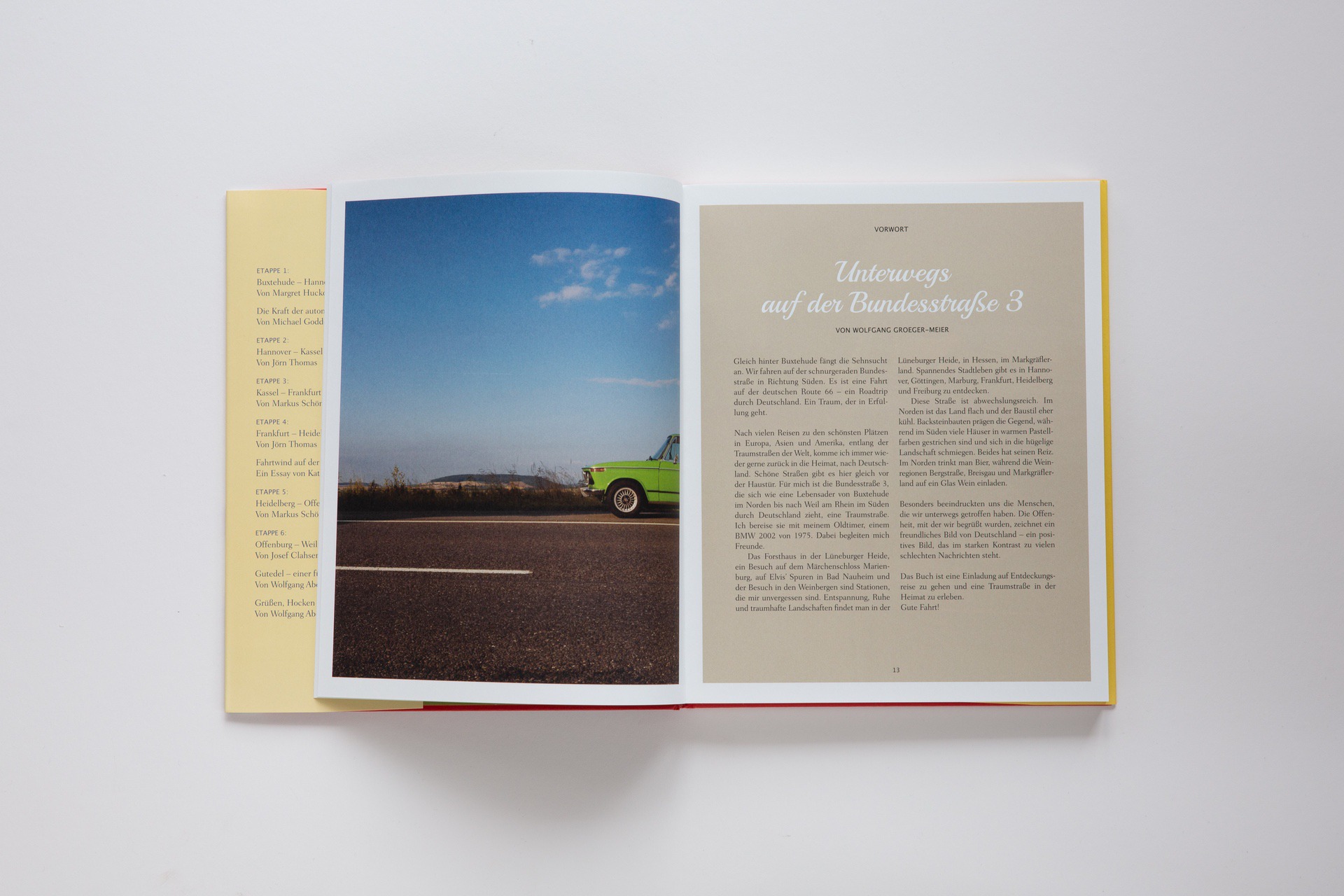 Again and again, the book portrays the people who live and grew up on Bundesstrasse 3. Spiegel author Margret Hucko visits a design agency in the northern German province on her stage. On the way from Kassel to Frankfurt, Berlin journalist Markus Schönfeld meets fans of the BMW 02 and Auto Zeitung test chief Michael Godde shares his journey around Bad Nauheim how he discovered his enthusiasm for automobiles even as a child in a BMW 2002 ti.
