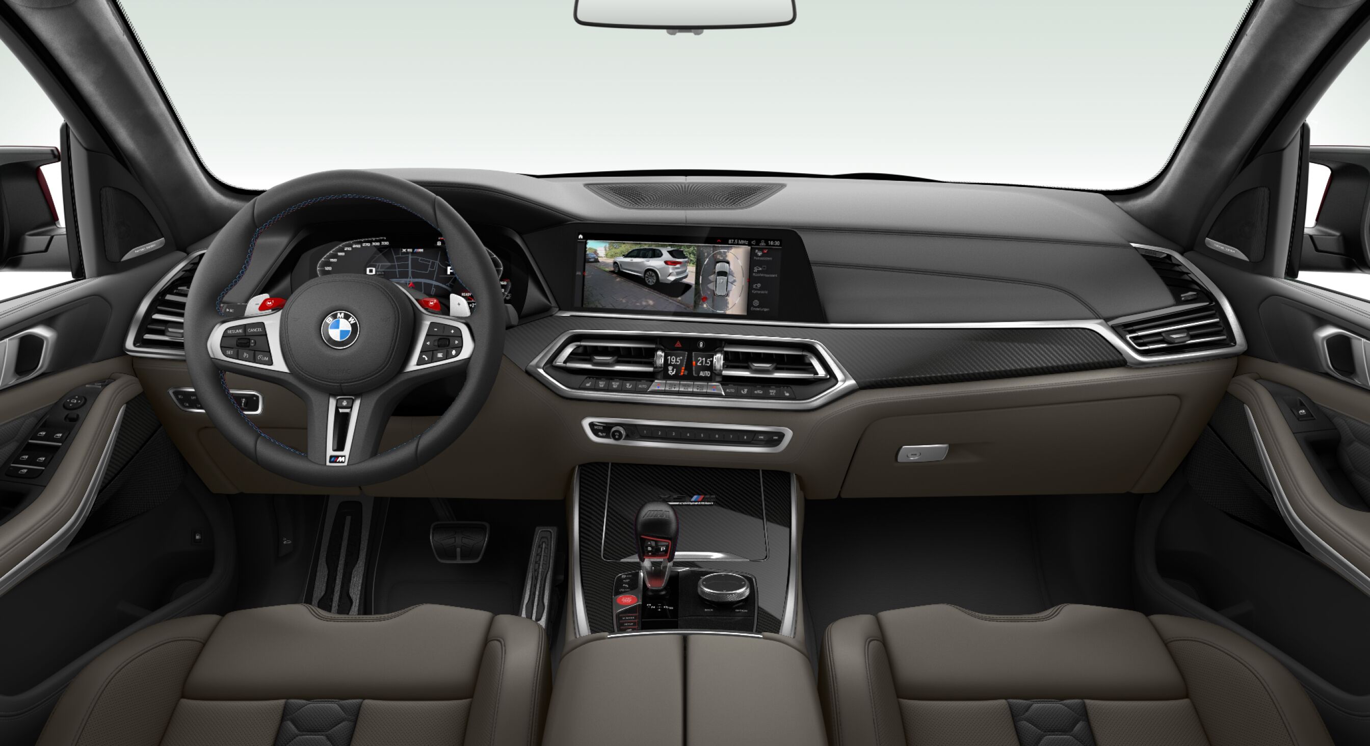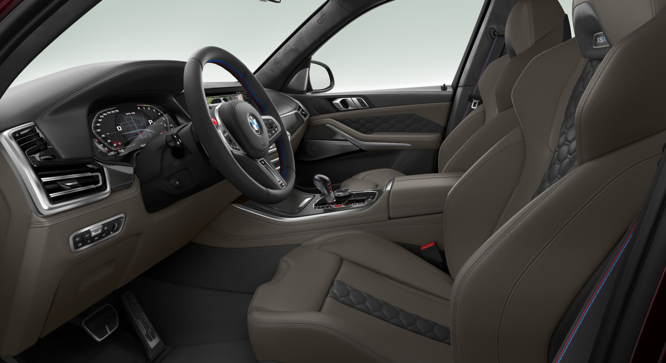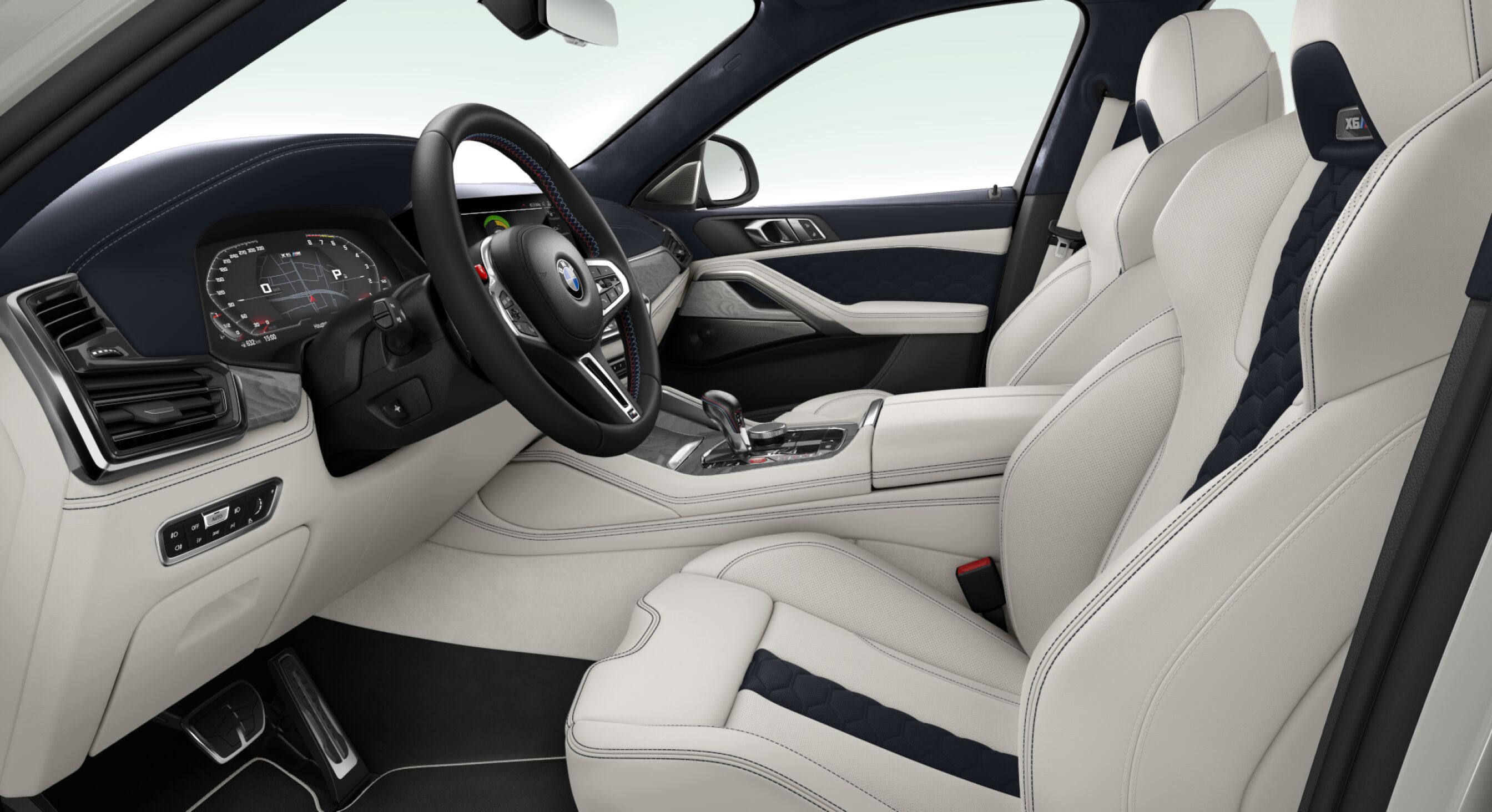 Secondly, I featured my favorite BMW X6 M Competition in a sparkling Donington Gray metallic exterior color. I specced the interior in the full leather BMW Individual Merino Ivory White/Night Blue upholstery, with the BMW Individual fine-wood Ash Grain Silver Grey high-gloss trim for the dashboard and door covers.