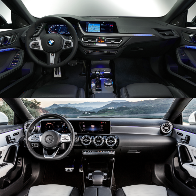 It is rather hard to decide between the two, but BMW somehow manages to be the eye-catcher in this game as well. Deeply rooted in its tradition, the Mercedes simply looks rather bland and uninspiring, while also being correct in styling and not overly styled. Too much of a bar of soap. Looking at the 2 Series Gran Coupe signals a fresher attitude, more presence and understated elegance, mixed with some precisely dosed inspiration from some its mighty ancestors: the 6 Series Gran Coupe, the 4 Series Gran Coupe and the 8 Series Gran Coupe.