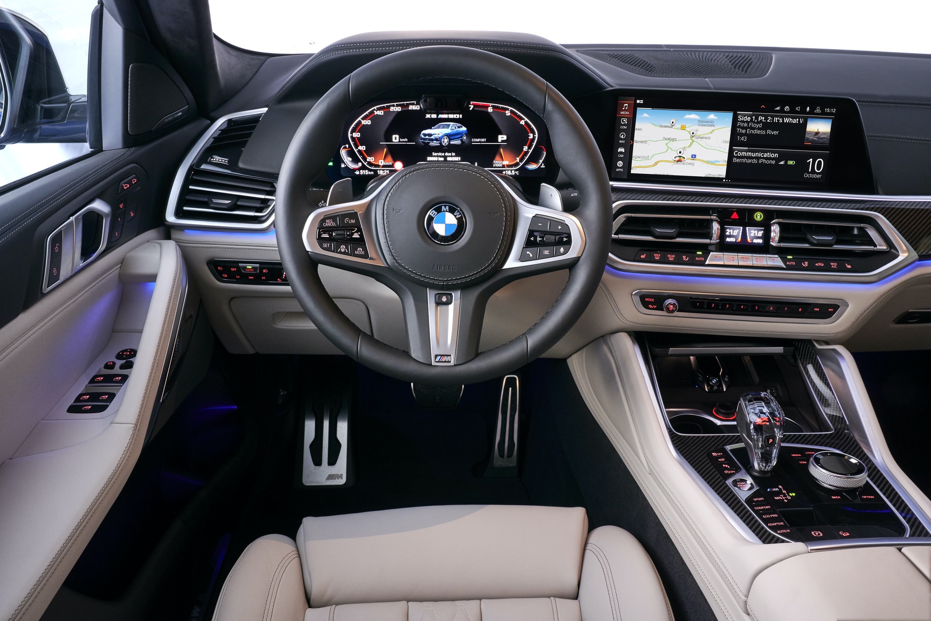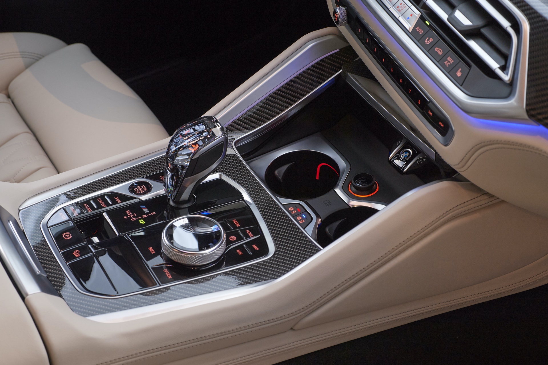 It’s a fantastic interior that prioritizes quality, comfort and ergonomics over flash and unnecessary LEDs. Just like the BMW X5, the X6 gets thermoelectric cupholders which are honestly brilliant. It also gets a Panoramic Glass Roof Sky Lounge – the largest ever on an X6 – which features 15,000 illuminated patterns in the glass at night. There’s also the same glass effect options, on the shift lever, starter button and even the volume knob, as the X5, X7 and 8 Series.