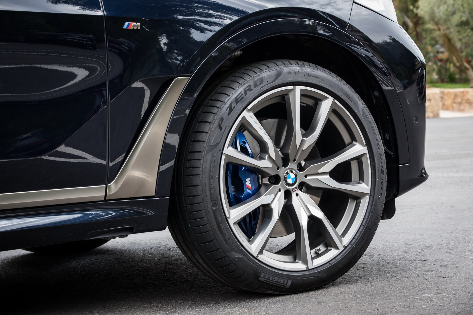 The X7 M50d was finished in Carbon Black metallic exterior color exuding muscularity and beefiness, with the Cerium Gray accents and details further accentuating the special status of the M Performance model. The “shoes” of the X7 M50d were represented by the 22-inch code 755 M alloy wheels featuring a bicolor visual treatment in silver and Cerium Gray.
