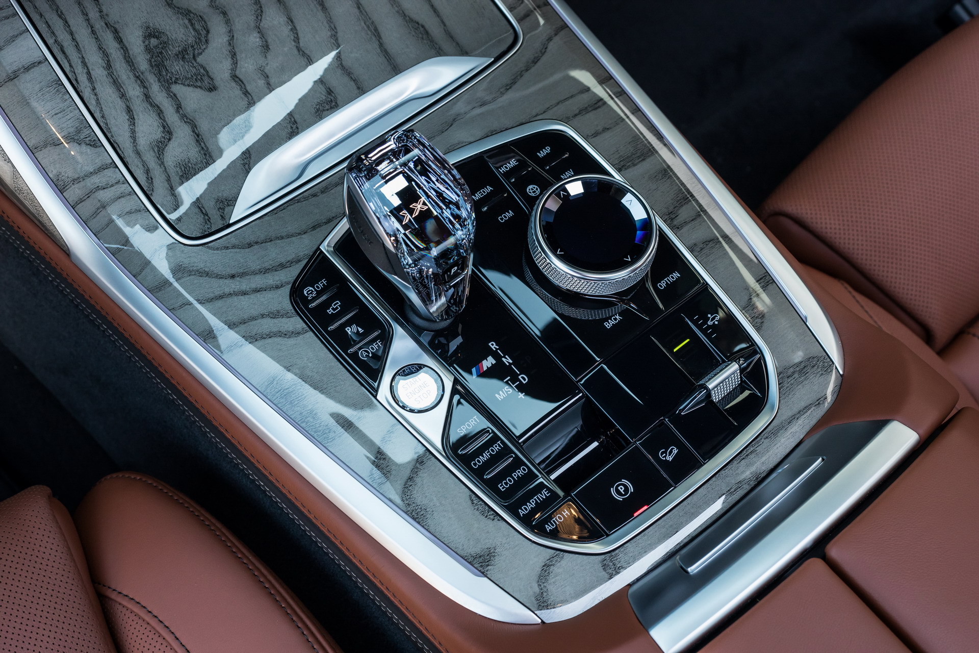 The cabin boasts a classy BMW Individual Merino Tartufo leather upholstery with extended content, CraftedClarity glass application for the electronic gear shifter, iDrive controller and engine start/stop button. The wood trims for the dashboard and door covers are also coming from the BMW Individual customization program in the form of high-gloss silver gray ash wood.