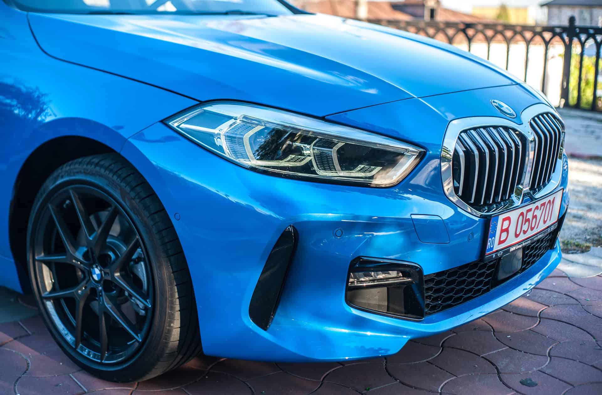 Our tester was wearing the Misano Blue color, a truly eye-catching paint and had the Shadowline treatment applied on the exterior trims, creating a rather nice contrast, combined with the matte grey wheels. Up front, the chromed kidney grille also stood out quite a lot and I would’ve gone for a blacked-out choice, just to hide their size a little bit.