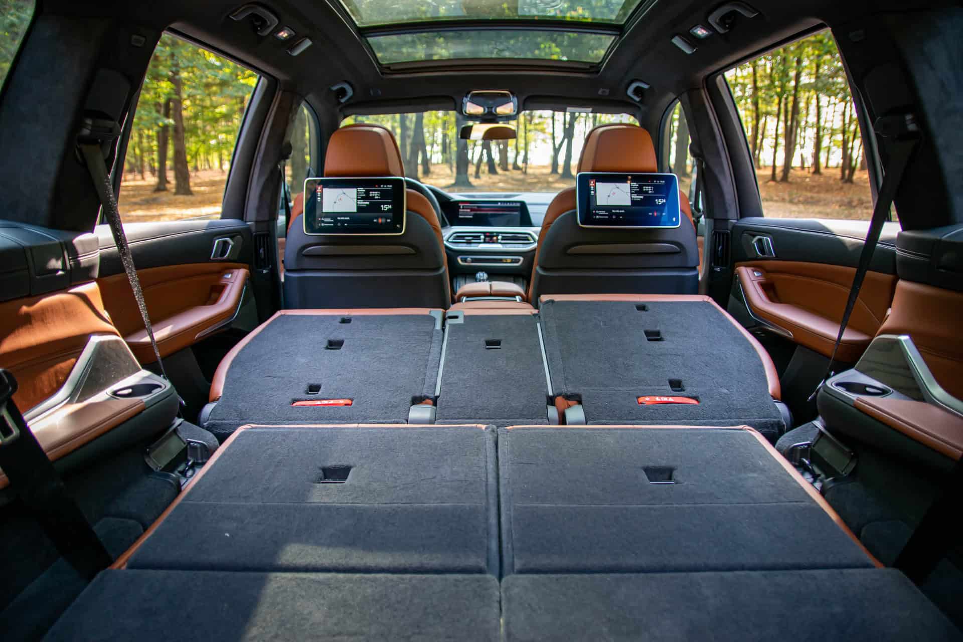 The two front rows are spacious and luxurious. You get all the latest tech and the best materials you can possibly buy in the BMW range. This is, to all means and purposes, a 7 Series SUV. Our tester had Nappa leather in Cognac and felt just as luxurious as the 7er.