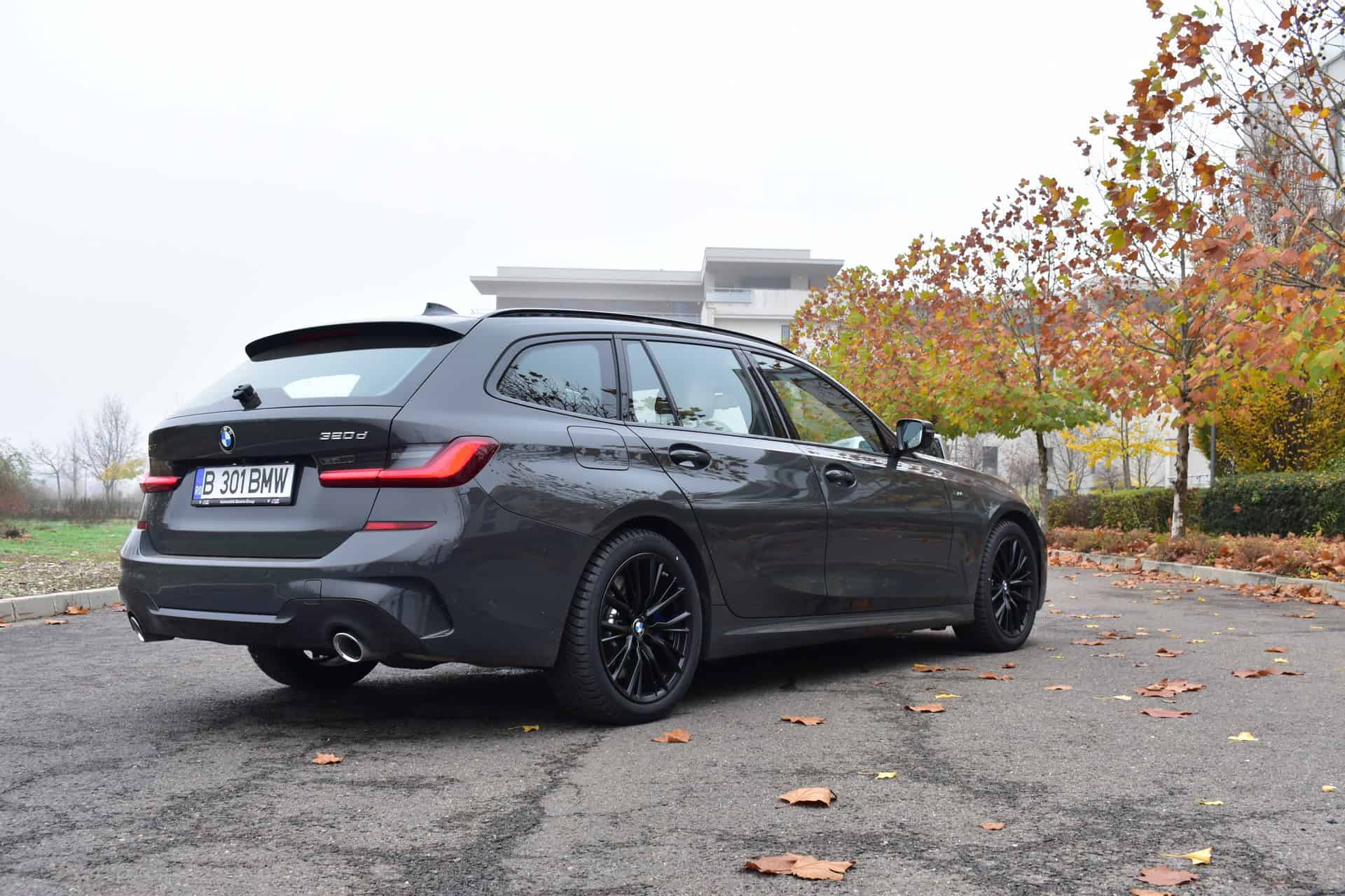 The BMW 320d xDrive Touring M Sport test car was sporting the BMW Individual high-gloss Shadow Line all-black exterior ornaments, the deep BMW Individual Dravit Gray metallic color and the 18-inch, matte black M Sport 796M alloy wheels with winter tires, which comprehensively round off the astonishing design of the Bavarian sports wagon.
