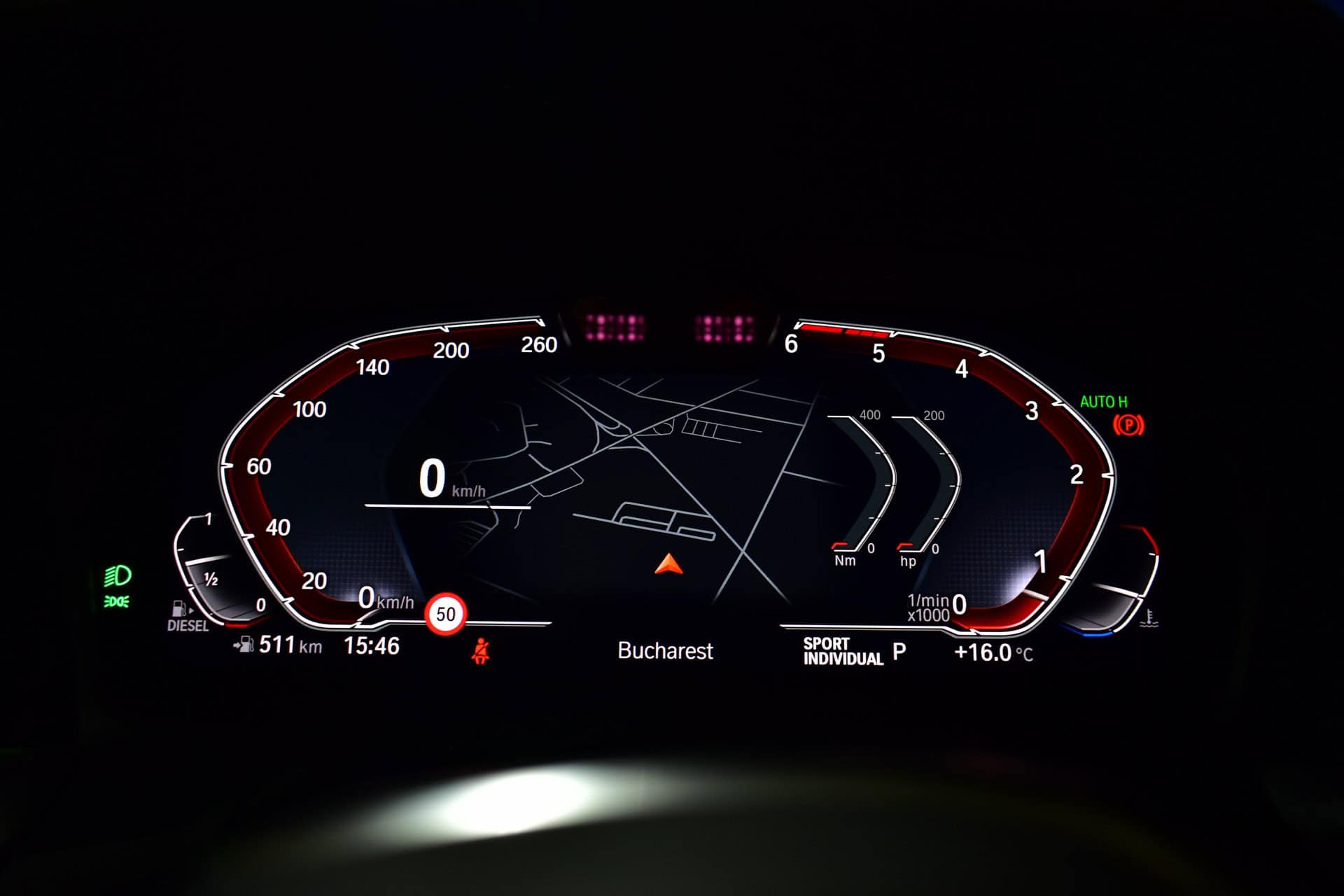 On the Live Cockpit, you can also get information on music artwork, instant output and torque, consumption and many others. One nice feature to be displayed on the central control screen is the Sport Display, which reveals to the driver relevant information of gravitational acceleration (side, forward, backward), turbine pressure, output and torque.