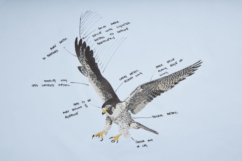 Every shade, every muscularity feature, the way the feathers are disposed, the various angles and proportions of the falcon’s body, every single detail was taken care of and examined methodically as to achieve a maximum level of genuineness.