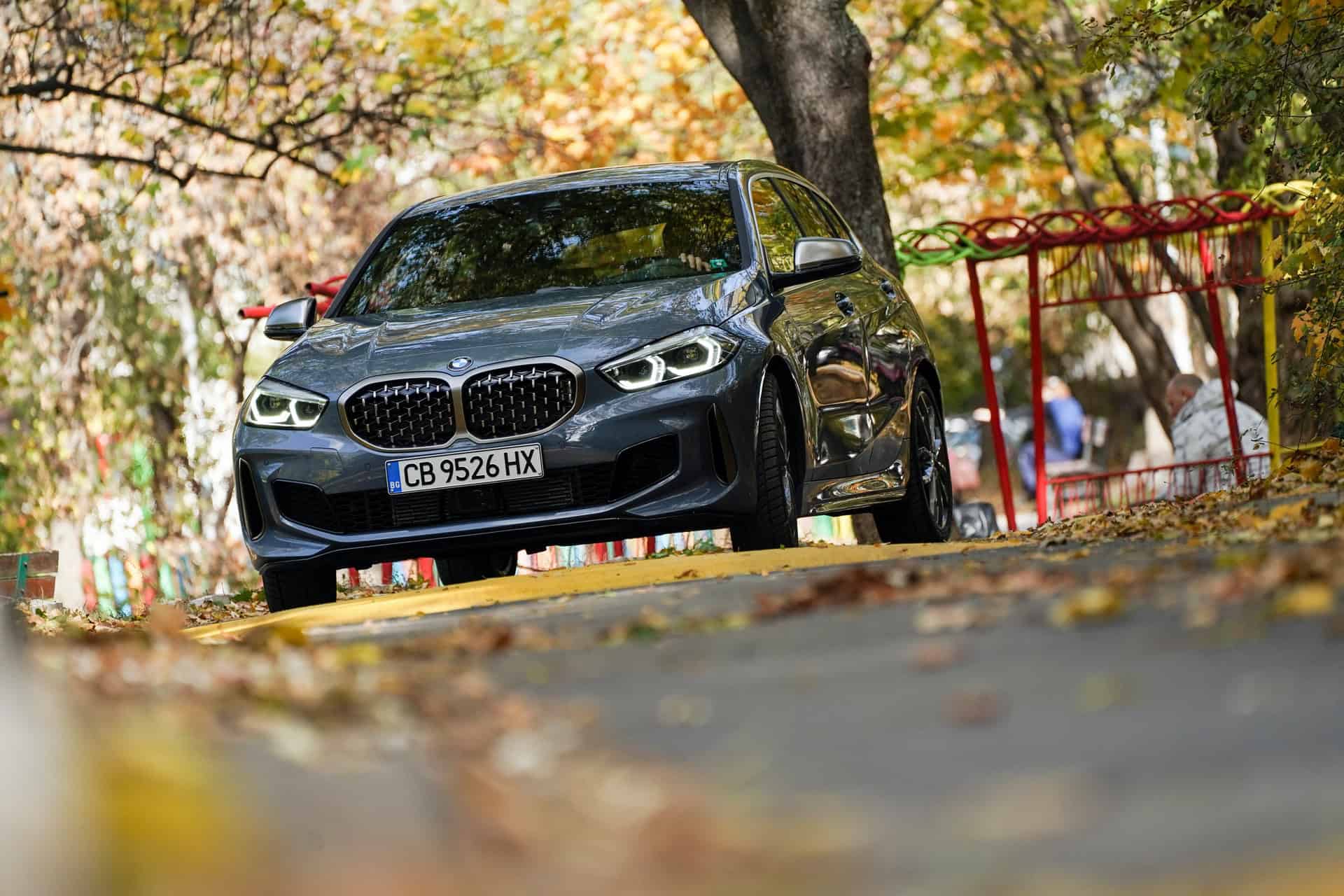 As part of the local presentation, BMW Bulgaria revealed a new photo gallery of the BMW M135i painted in Storm Bay Blue Metallic. In the photos, we see the top model of the third generation in a Fall setting and seeing what it looks like under different light conditions. The Storm Bay Blue costs an additional 1,200 euros and is more expensive than the other metallic finishes priced at 700 euros.