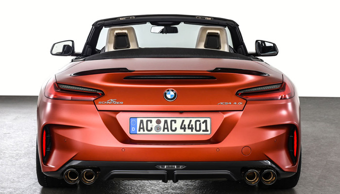 Let’s list some of the upgrades. AC Schnitzer sports rear silencers with “Sport Carbon” or “Sport black” tailpipes for the Z4 M40i with 2 tailpipes each in right/left combination (4 pieces) are available for the exhaust. The Z4 20i and 30i can be equipped with tailtrims right/left combination (2 pieces).
